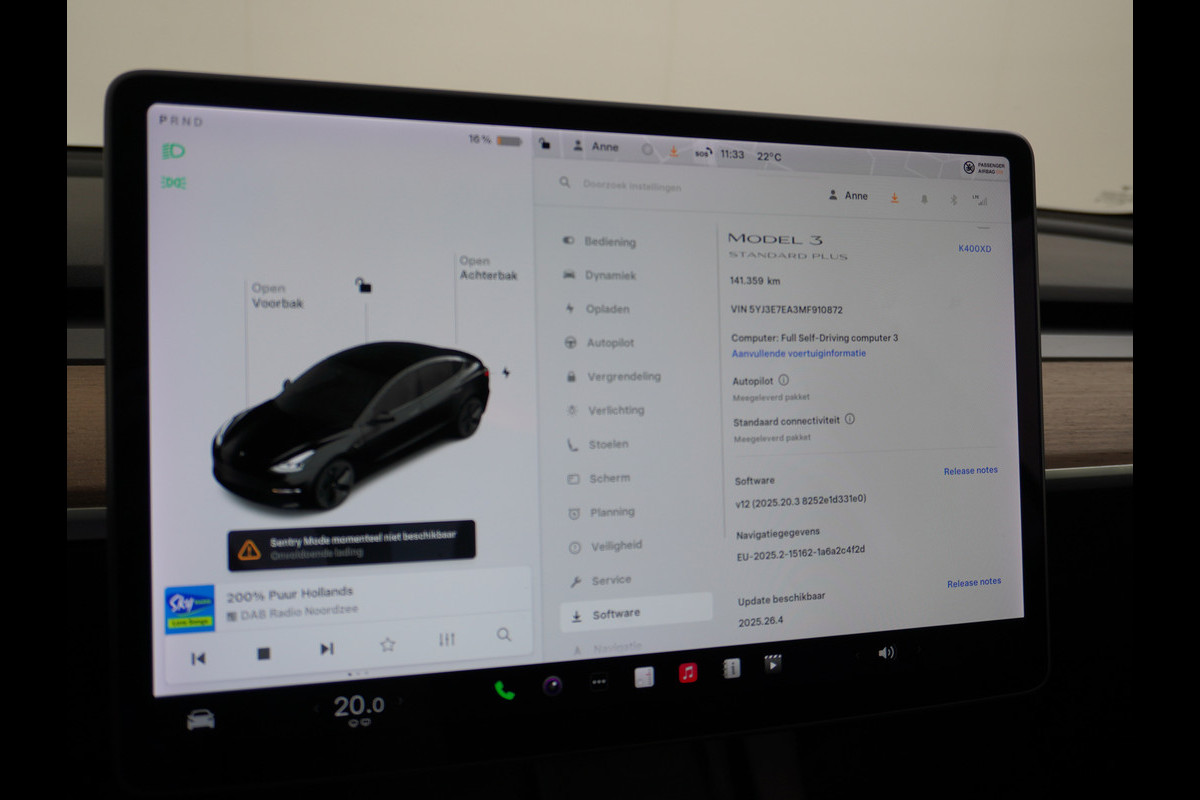 Tesla Model 3 RWD SR+ NW Model 60kWh LFP 283PK Trekhaak Warmtepomp Elektr.A-klep FSD-3 Sentry Mode Bankverwarmd FSD 18" Premium Luidspr. AutoP Navi LED Comfortstoelen ACC DAB Keyless en Voorverwarmen interieur via App One-Pedal-Drive Origineel Nederlandse auto Garantie Accu/Motor tot 31-03-2029 max 160.000km 1.584kg licht!