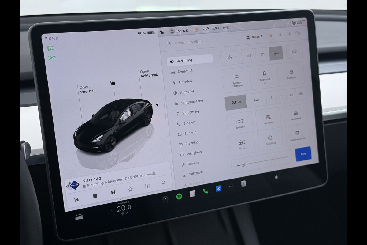 Alle functies voor een veilige en zuinige rit worden overzichtelijk weergegeven op het digitale dashboard. Een vergeten muurtje, een verborgen paaltje? Dat gebeurt niet meer, dankzij de achteruitrijcamera. Adaptive cruise control is een comfortabele en veilige optie. Het systeem reguleert de snelheid en houdt automatisch afstand tot uw voorligger. Dankzij de spraaksturing bedient u verschillende functies zonder uw handen van het stuur te halen. Met het navigatiesysteem kiest u de snelste route naar uw eindbestemming. Met WIFI-hotspot, automatische airconditioning, DAB ontvangst, regensensor, keyless entry en automatisch dimmende buitenspiegels is deze Tesla helemaal compleet.