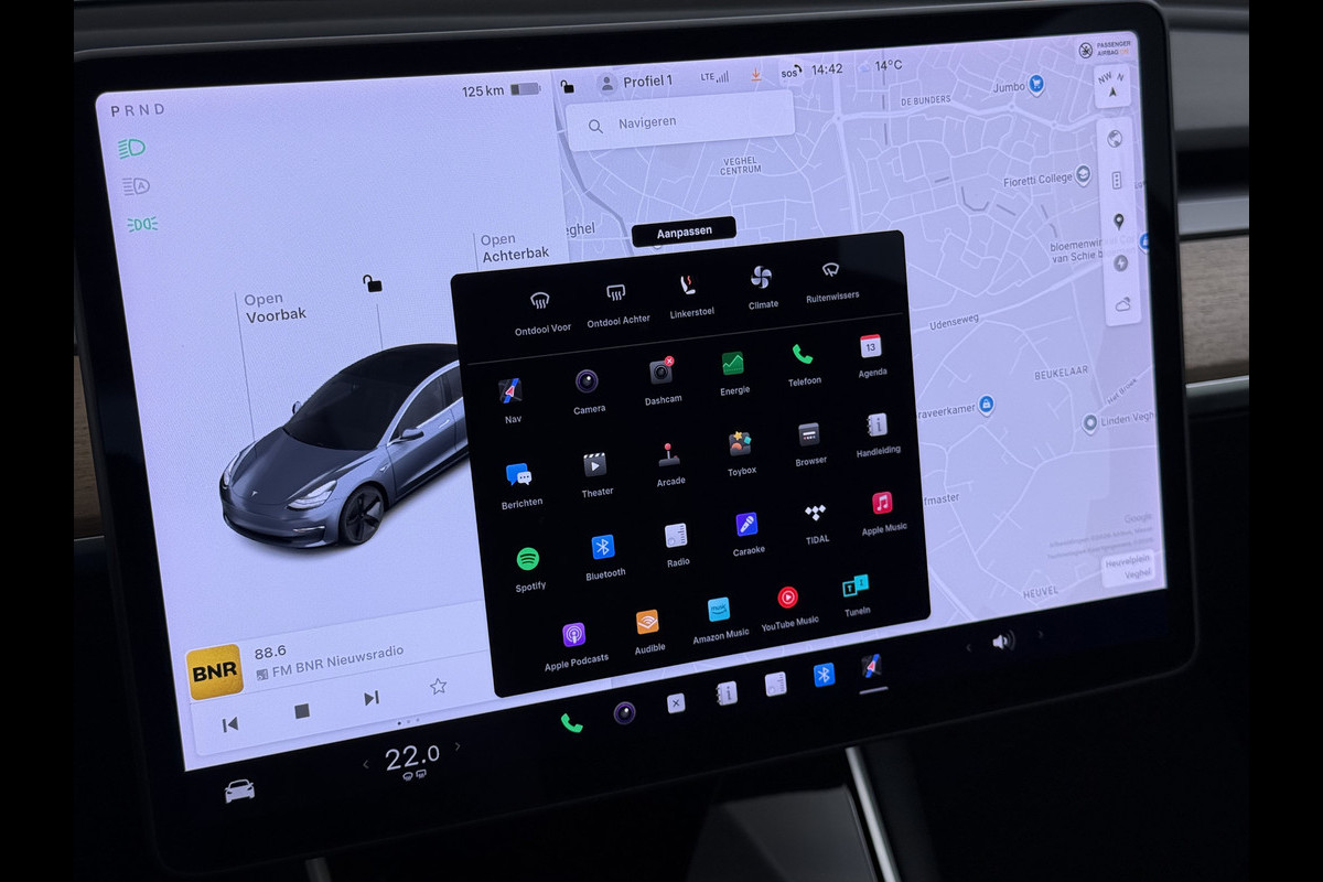 Een cockpit, een informatiecentrum... Wat is de cabine eigenlijk niet? Dankzij het digitale dashboard bent u van alles op de hoogte. Ongelukken of parkeerschade? Dat gebeurt u niet meer, met de achteruitrijcamera. Adaptive cruise control houdt de ingestelde snelheid vast en houdt automatisch afstand tot uw voorligger. Praat tegen deze auto en de auto doet wat u wilt dankzij de ingebouwde spraakbediening. Als u regelmatig met een aanhanger of een fietsendrager op pad bent, is de afneembare trekhaak een praktische extra. Ook is de Tesla uitgerust met: full map navigatiesysteem, WIFI-hotspot, automatische airconditioning, DAB ontvangst, regensensor en keyless entry.
