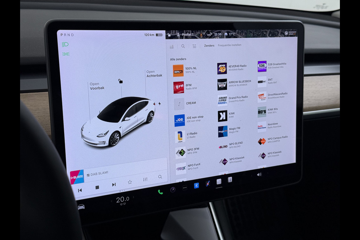 Tesla Model 3 SR+ 325PK LFP-Accu SOH 89.6% Lmv 19" AutoPilot Leer Pano-Dak Adaptive Cruise Lmv 18" Camera's Elektr.-Stuur+Stoelen+Spiegels+Geh Ecc Navi Led DAB Voorverwarmen interieur via App Keyless One-Pedal-Drive Wifi 1e Eigenaar Origineel Nederlandse Auto LFP accu dus 100% opladen!