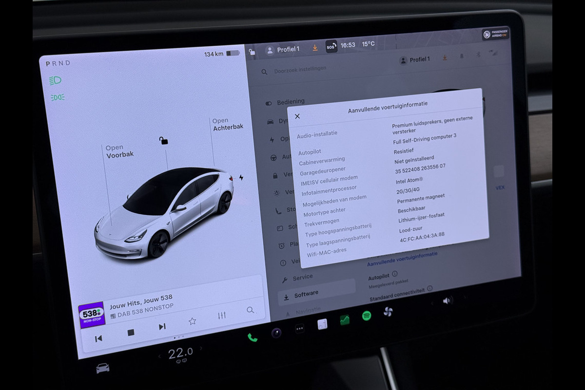 Tesla Model 3 SR+ 325PK LFP-Accu SOH 91% Trekhaak AutoPilot Leer Pano-Dak Adaptive Cruise Lmv 18" Camera's Elektr.-Stuur+Stoelen+Spiegels+Gehe Ecc Navi Led DAB Voorverwarmen interieur via App Keyless One-Pedal-Drive 1.000KG Trekgewicht Origineel Nederlandse Auto LFP accu dus 100% opladen!
