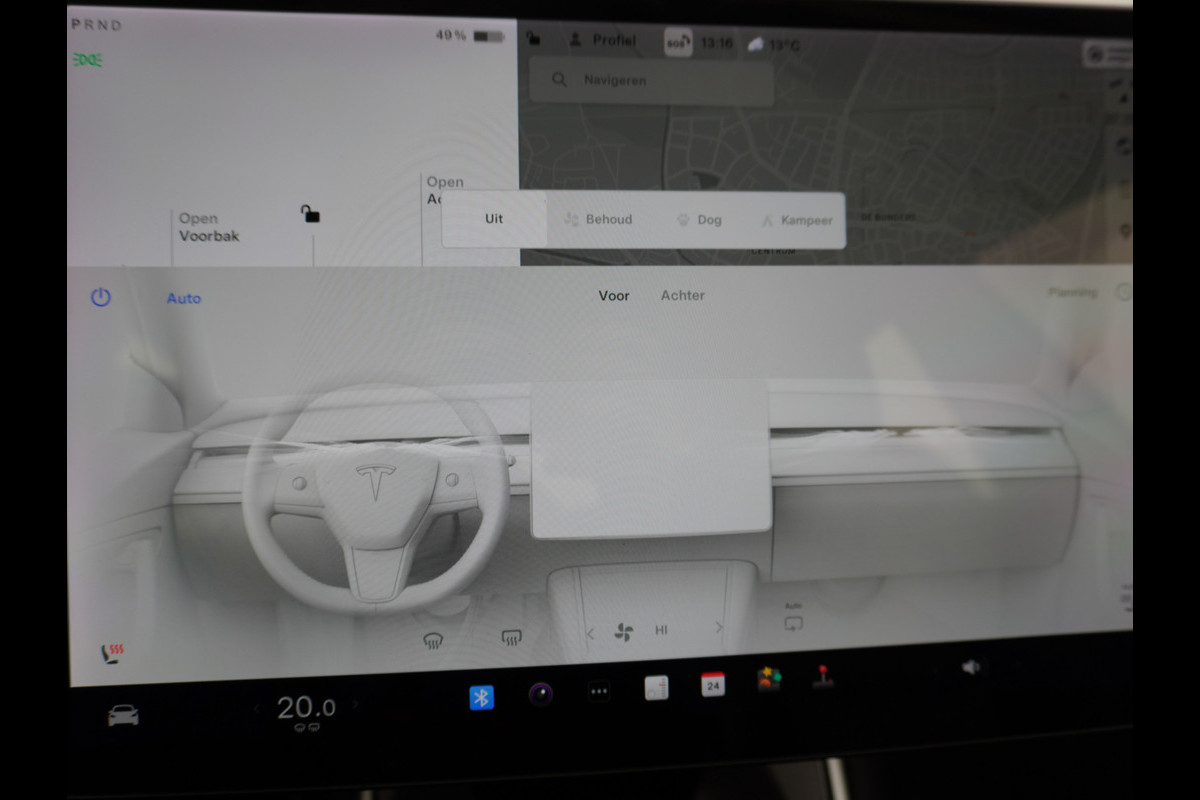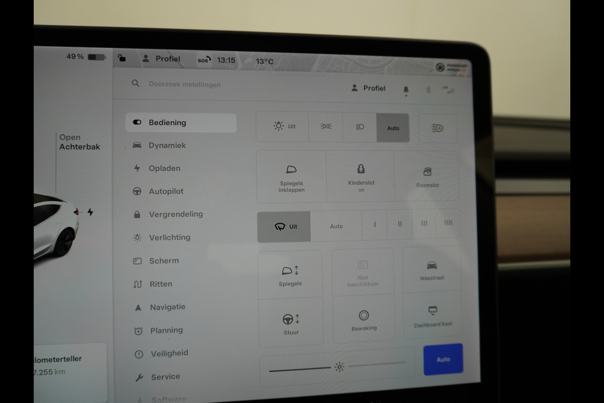 Zoals u mag verwachten van deze Tesla Model 3 is hij uitgerust met een reeks aan actieve veiligheidssystemen. Het forward collision warning-systeem is constant alert en detecteert via sensor de afstand tot voorliggers. Wordt die te klein, dan volgt een automatische waarschuwing. Als veilige optie heeft deze Tesla Model 3 lane assist, die u binnen de lijnen van uw rijstrook houdt wanneer u even niet oplet. De auto is ook uitgerust met dodehoekdetectie, hill hold functie en autonoom remsysteem.