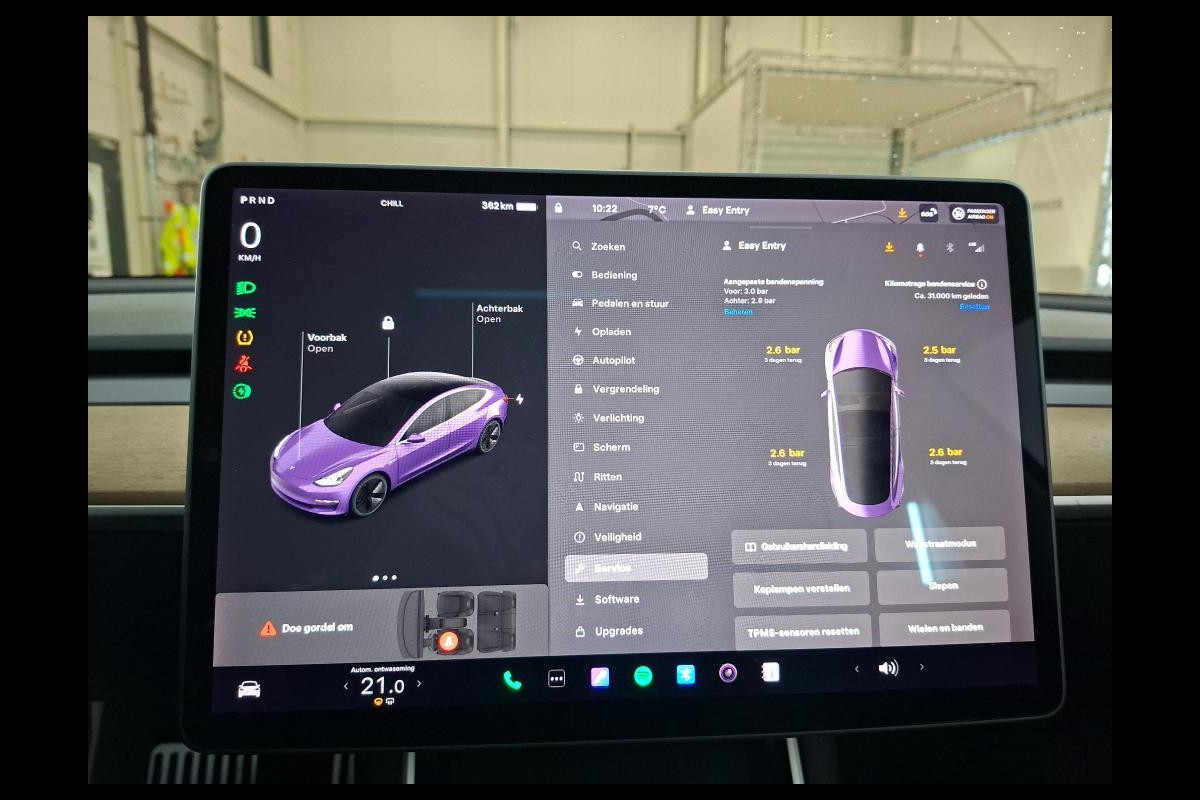 In de Tesla Model 3 heeft uw veiligheid en die van uw omgeving prioriteit. De sensor van het forward collision warning-systeem registreert permanent de afstand tot voorliggers en grijpt in als een botsing dreigt. In deze Tesla vinden we verder een dodehoekdetectie en autonoom remsysteem.