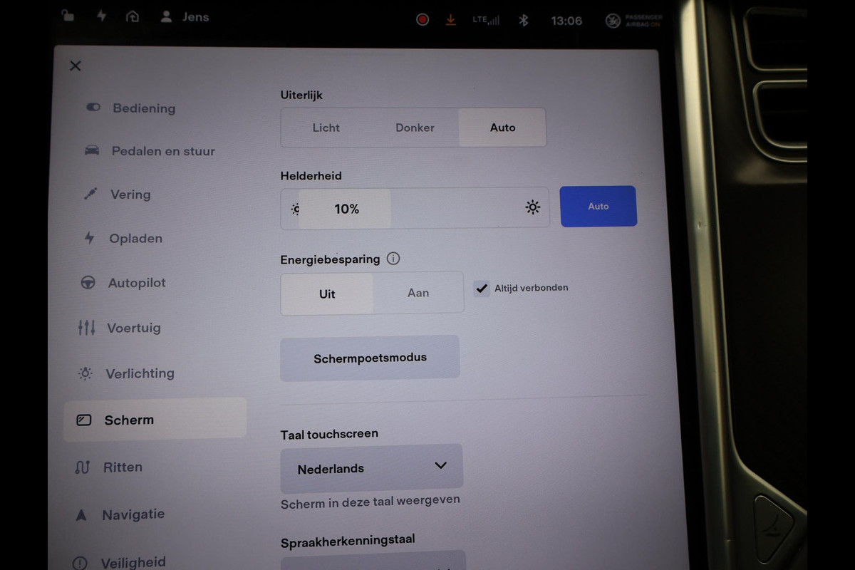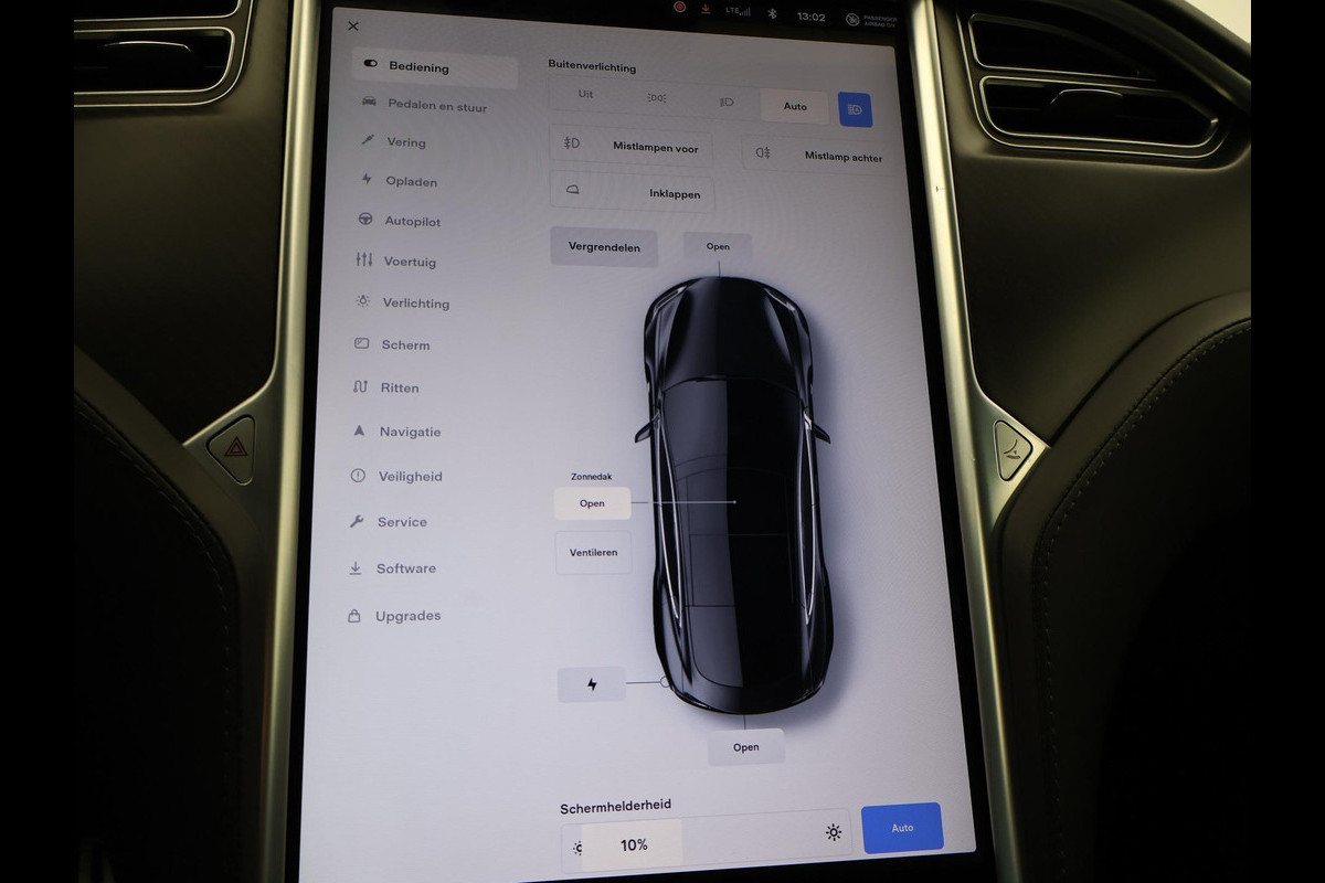 Model S 100D met de 100 kWh accu in de Performance uitvoering met 612 PK in plaats van de standaard 418 PK die de gewone 100D heeft. 613 km actieradius volgens fabrieksopgave, RDW nieuwprijs 162.450 euro, Zwart met zwart leder interieur en zwarte alcantara hemelbekleding, Rode Tesla logo's, Verbeterde Autopilot Enhanced Autopilot 2.5, Stuurwielverwarming, Stoelverwarming voor + achterin, 21 inch hoogglans zwarte velgen, Panorama schuif/kanteldak elektrisch bedienbaar, Carbon interieur pakket met carbon dashboard inleg, Achteruitrijcamera, Spotify, Spelletjes en apps, Digitale radio, LED koplampen, LED achterlichten, Adaptive cruise control, Luchtvering met regelbare rijhoogte,