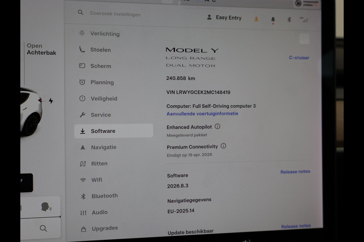Origineel Nederlandse en 1e eigenaar auto van 12-2021, RDW nieuwprijs 70.100 euro, Long Range AWD uitvoering, 351 PK vermogen, BTW verrekenbaar, Exterieurkleur wit met 20 inch zwarte velgen, Enhanced Autopilot (twv 3800 euro meerprijs vanaf fabriek), Zwart leder interieur met stoelverwarming en stuurwielverwarming, Achteruitrijcamera en zij-camera's, Panoramadak, Privacy glass, Navigatie, Spotify, Bluetooth, Adaptive cruise control, Climate control, Elektrische stoelverstelling, Digitale radio, Mat afgewerkt houtinleg.