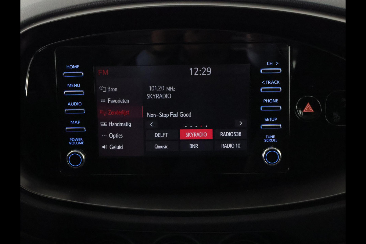 Ook achter de auto geen verrassingen bij het inparkeren. Daarvoor zorgt de achteruitrijcamera. Met adaptive cruise control houdt deze auto automatisch afstand tot uw voorligger. Ook over uw schouder ziet u onderweg niet alles wat er aan de achterzijde gebeurt. Daarom heeft deze Toyota Aygo X een achteropkomend verkeer waarschuwing. De DAB-ontvanger zorgt voor een ruime keuze uit digitale radiozenders en een kristalheldere geluidsweergave. Natuurlijk is er in deze auto airconditioning aanwezig. Met lederen stuur en centrale deurvergrendeling met afstandsbediening is deze Toyota helemaal compleet.