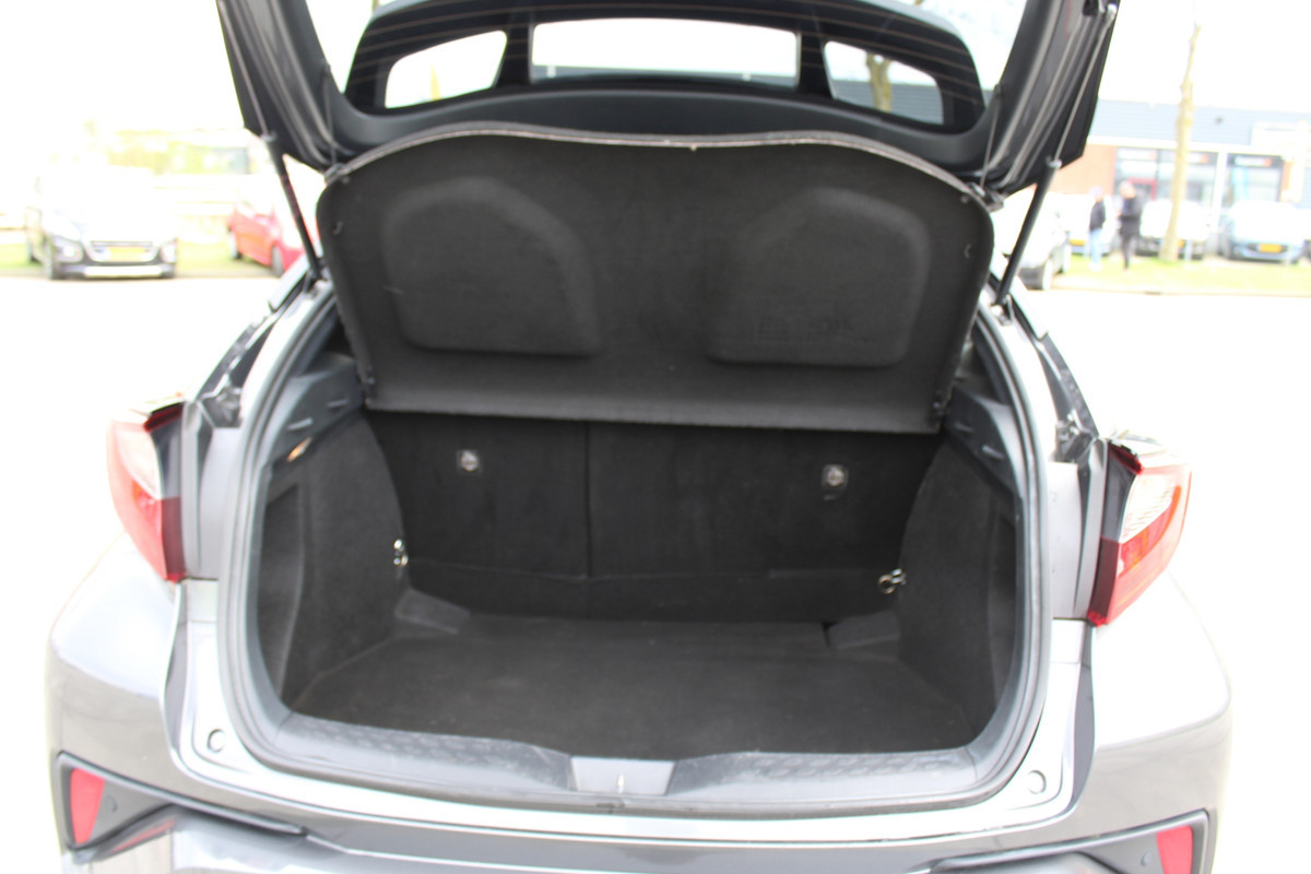 Zoals u mag verwachten van deze Toyota C-HR is hij uitgerust met een reeks aan actieve veiligheidssystemen. Dat de auto steeds meer taken van de bestuurder overneemt, merkt u bijvoorbeeld aan het systeem voor verkeersbord-detectie in deze Toyota. Ook als uw aandacht even verslapt, blijft de forward collision warning bij de wekker. Dreigt er een botsing met een voor- of tegenligger, dan waarschuwt het systeem direct. Het accident avoidance system helpt aanrijdingen te voorkomen. In deze Toyota vinden we verder een dodehoekdetectie, hill hold functie, brake assist en bandenspanningcontrolesysteem.