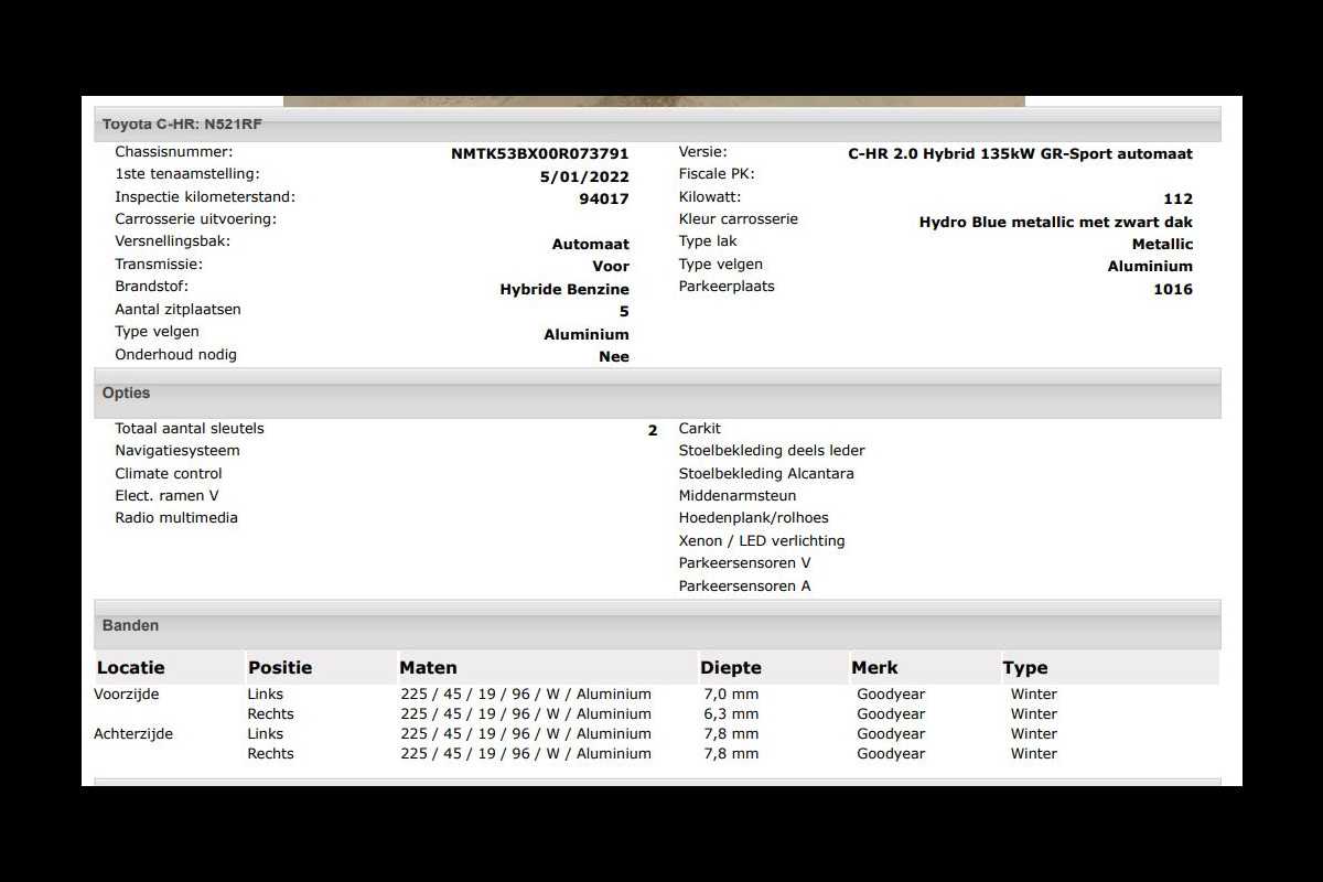 Het kan echter voorkomen dat uit de automatische voertuiginformatie een optie of accessoire naar voren komt die helaas toch niet op de auto aanwezig is.