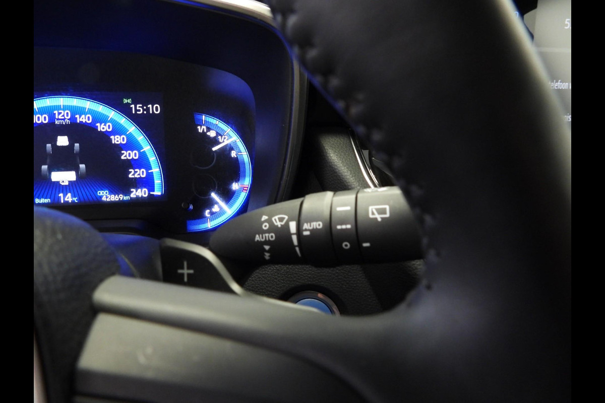 Het digitale dashboard stelt u in staat uw cockpitinterface te personaliseren. Afstand schatten bij het achteruitrijden? Niet nodig. U weet het precies, dankzij de achteruitrijcamera. Adaptive cruise control houdt de ingestelde snelheid vast en houdt afstand tot het voertuig voor u. Gemak dient de mens. Dankzij de spraaksturing bedient u de belangrijkste functie met uw stem. Kilometerstand? Oliepeil? Accuspanning? Allemaal te zien via de app. Overal. Altijd. Dankzij Connected Services. Ook is de Toyota uitgerust met: full map navigatiesysteem, achteropkomend verkeer waarschuwing, climate control, sportstuur met schakelpaddels, draadloos opladen en DAB ontvangst.