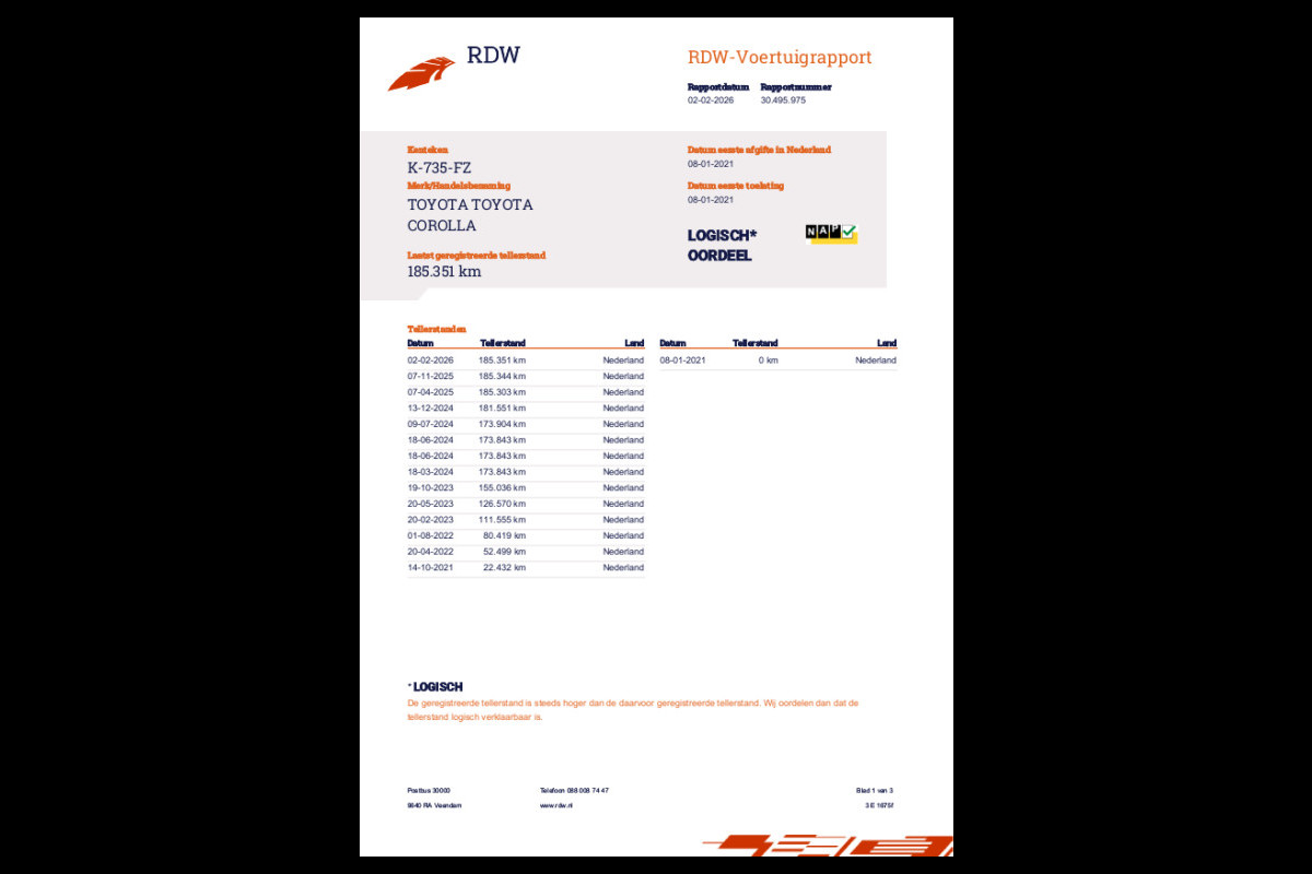 • Gecontroleerde kilometerstand (NAP).