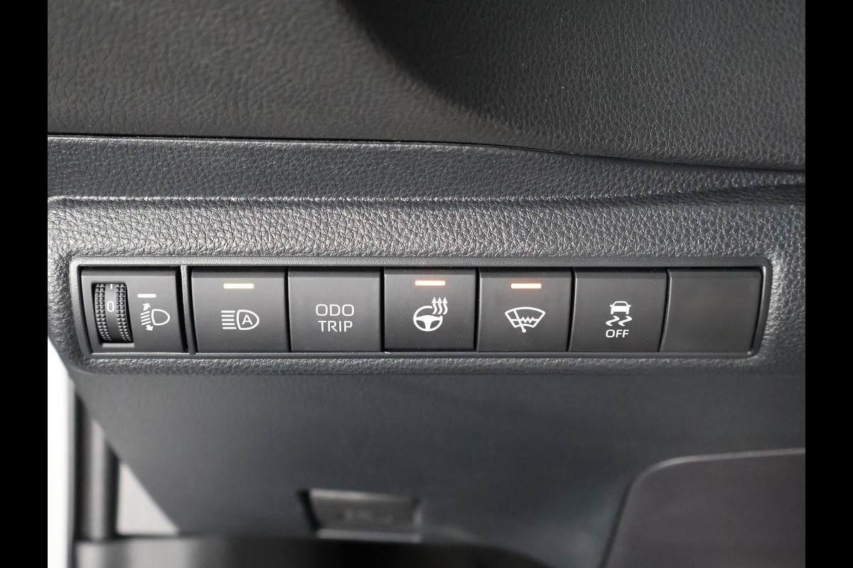 Bij het inparkeren laat de achteruitrijcamera precies zien hoeveel meter... decimeter... centimeter ruimte er nog is! Als u de adaptive cruise control inschakelt, regelt de auto zelf de snelheid en de afstand tot de auto voor u. Met uw smartphone maakt u overal contact met de auto. Remote services geven direct inzicht in uiteenlopende functies en zijn op afstand te activeren. Deze Toyota is voorzien van spraakbediening voor het full map navigatiesysteem en voor het audio-installatiesysteem met DAB-ontvangst. Maar u kunt ook de knoppen op het stuur gebruiken. Radarsensoren aan de achterkant van de auto zorgen voor een achteropkomend verkeer waarschuwing als de afstand tot het verkeer achter te klein wordt. U bent in deze Toyota ook voorzien van automatische airconditioning, buitentemperatuurmeter, lederen stuur en versnellingspook en centrale deurvergrendeling met afstandsbediening.