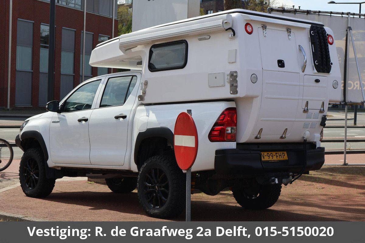 Uniek in Nederland, hoogwaardige materialen in de camper, een onderstel dat garant staat voor uitstekende rijeigenschappen en een motor die plenty power biedt. De Toyota HiLux Camper biedt een heleboel waar voor zijn geld. En wat een luxe in deze camperopbouw! Al het denkbare waar u dagelijks gebruik van maakt is aanwezig. Denk hierbij aan een elektrische verstelbaar bed, koelkast, inductieplaat, chemisch toilet, douche, binnen en buiten voorzien van LED-verlichting, zonnepanelen, heater en een elektrisch zonnescherm.