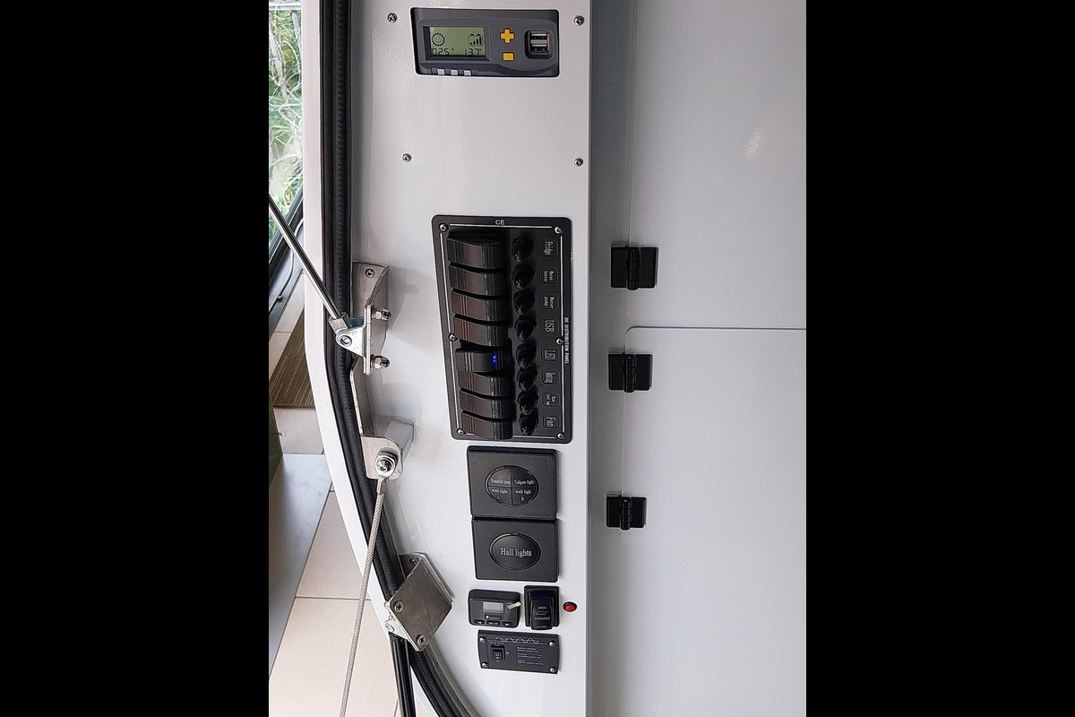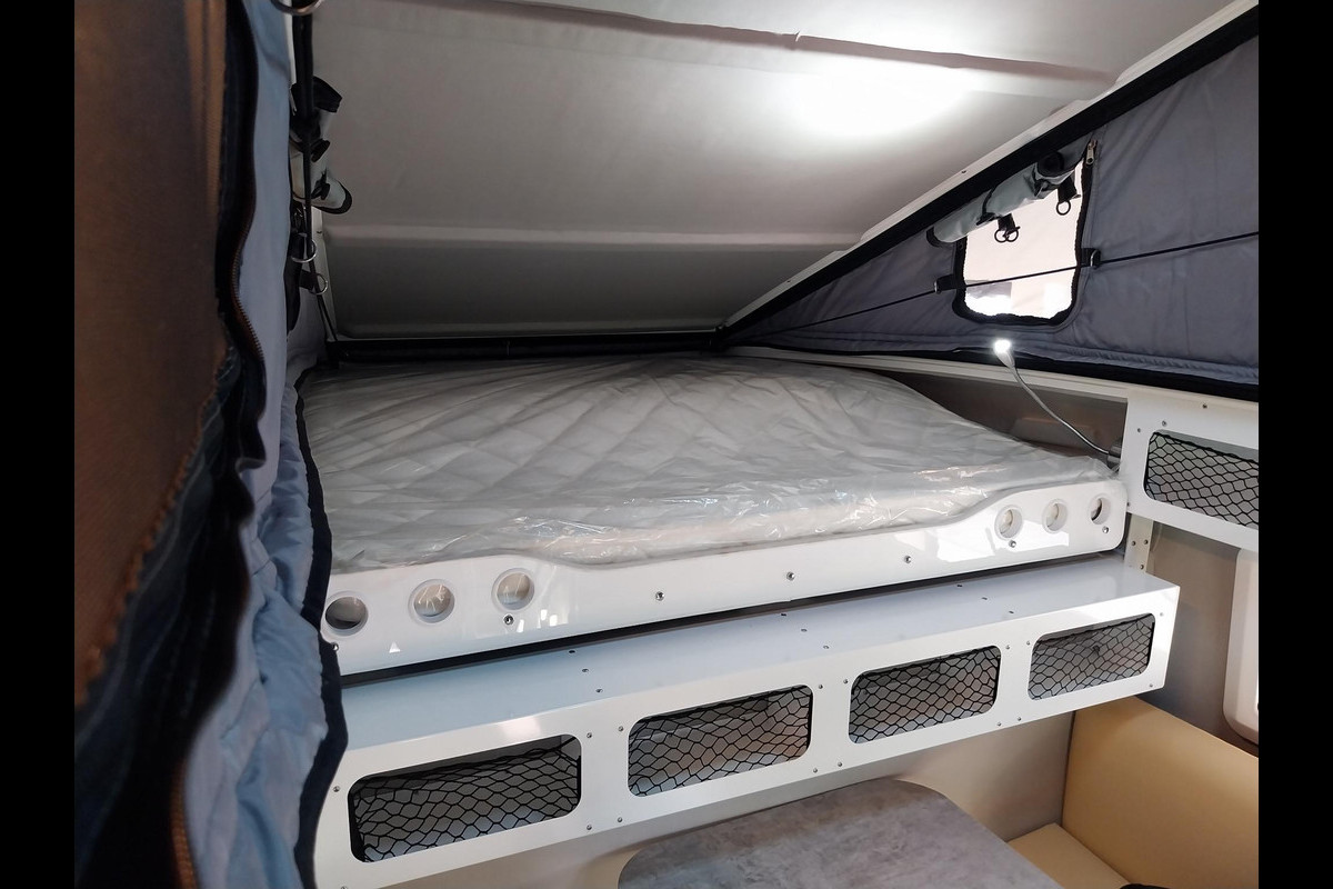 Wat een luxe in deze opbouw! Al het denkbare waar u dagelijks gebruik van maakt is aanwezig. Denk hierbij aan een elektrische verstelbaar bed, koelkast, inductieplaat, chemisch toilet, douche, binnen en buiten voorzien van LED-verlichting, zonnepanelen, heater en een elektrisch zonnescherm.