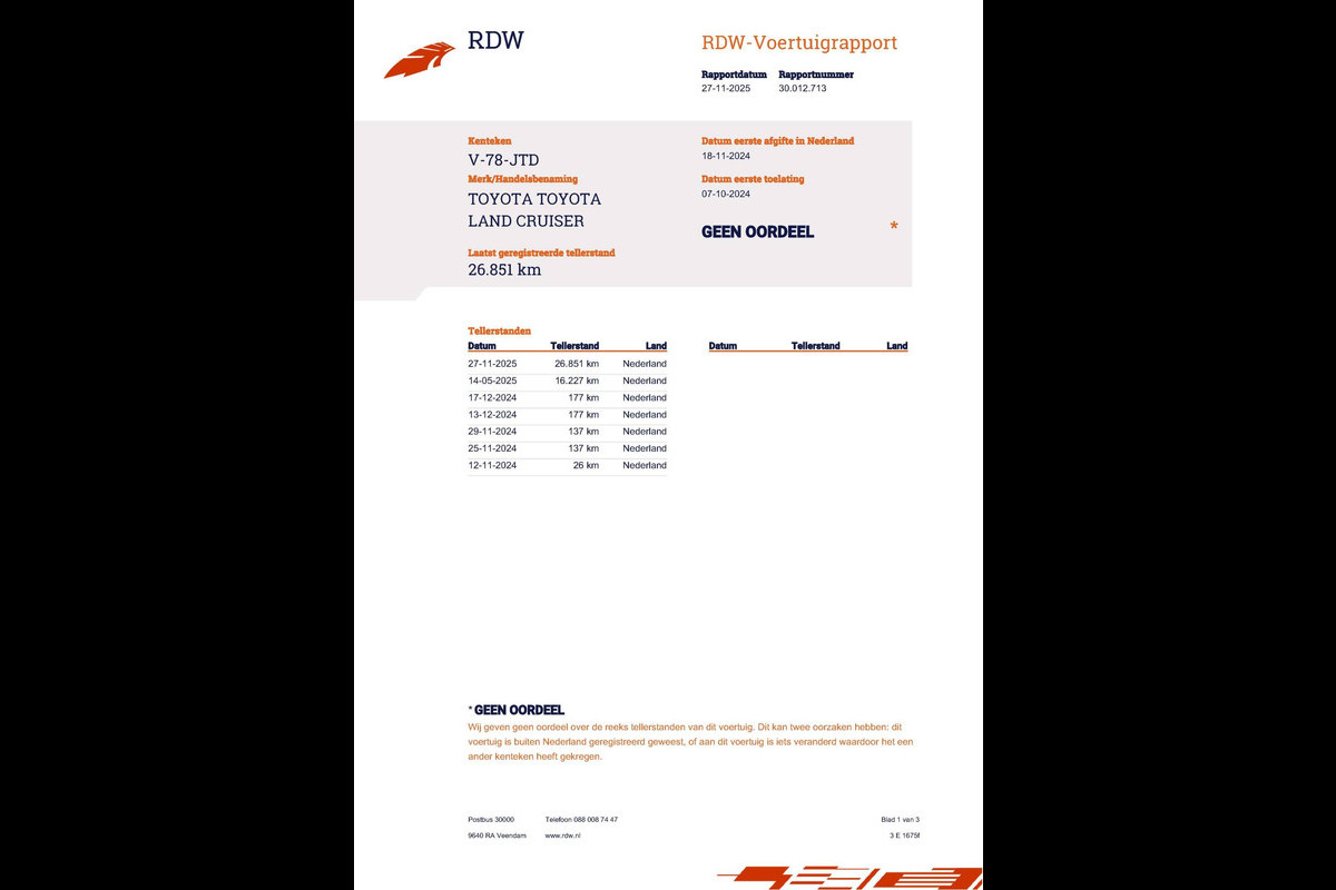 Huidige stand 26.851km