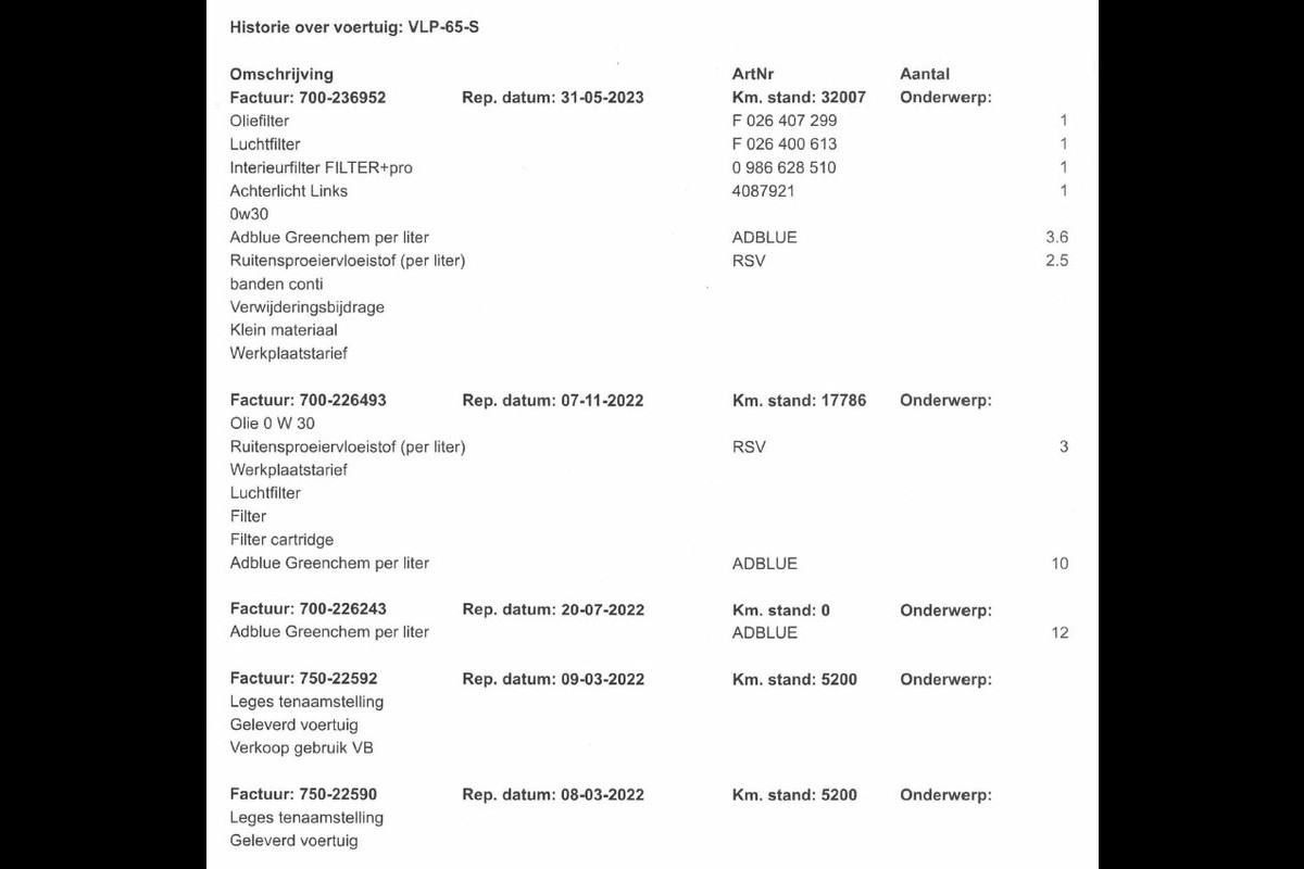 Onderhoudsboekjes: Aanwezig