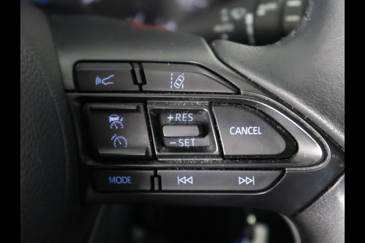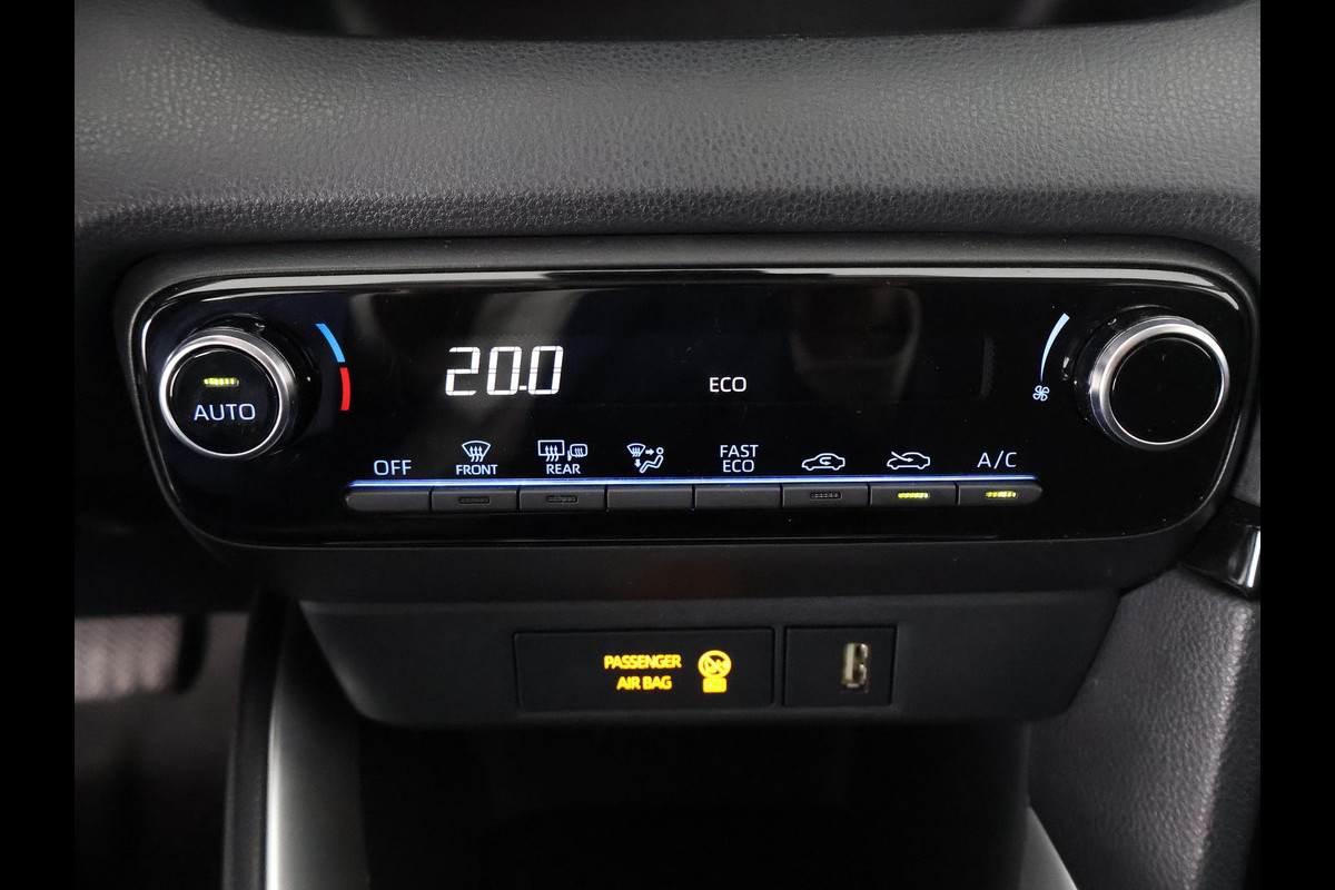 Kom maar, kom maar, kom maar... ho! Prettig hoor, zo'n achteruitrijcamera. Adaptive cruise control is veilig en comfortabel. De snelheidsregelaar houdt automatisch afstand tot het voertuig dat voor u rijdt. Deze Toyota Yaris is 'connected'. Belangrijke functies worden permanent gemeten en zijn uit te lezen via een speciale app, ook op afstand. Deze Toyota is voorzien van knoppen op het stuur om het audiosysteem met dab-ontvangst te bedienen. Of het buiten nu warm is of koud, dankzij automatische airconditioning is het binnen altijd behaaglijk. Deze Toyota is voorzien van regensensor, buitentemperatuurmeter, lederen stuur, centrale deurvergrendeling met afstandsbediening en lederen versnellingspook.