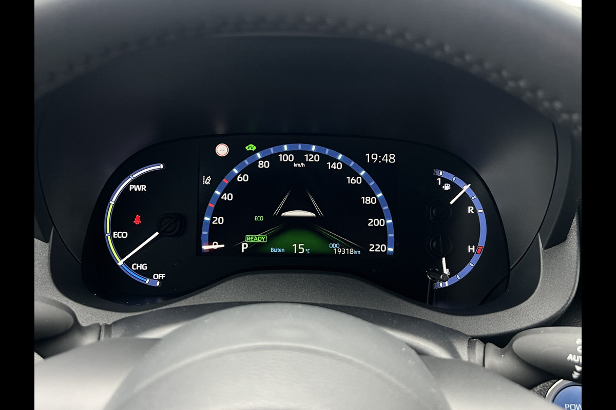 Het is een auto die er nog jaren tegenaan kan, deze Toyota Yaris die 19315 kilometer op de teller heeft staan. De hybride motor combineert het gebruik van brandstof en elektriciteit, en dat maakt van deze Toyota Yaris een zuinige, slimme auto. Stramme vingers krijgen 's winters een VIP-behandeling van het verwarmd stuurwiel. Bij de uitrusting van deze auto horen onder meer 17 inch lichtmetalen velgen, LED koplampen, dakspoiler, in hoogte verstelbare passagiersstoel, in delen neerklapbare achterbank en LED-achterlichten.