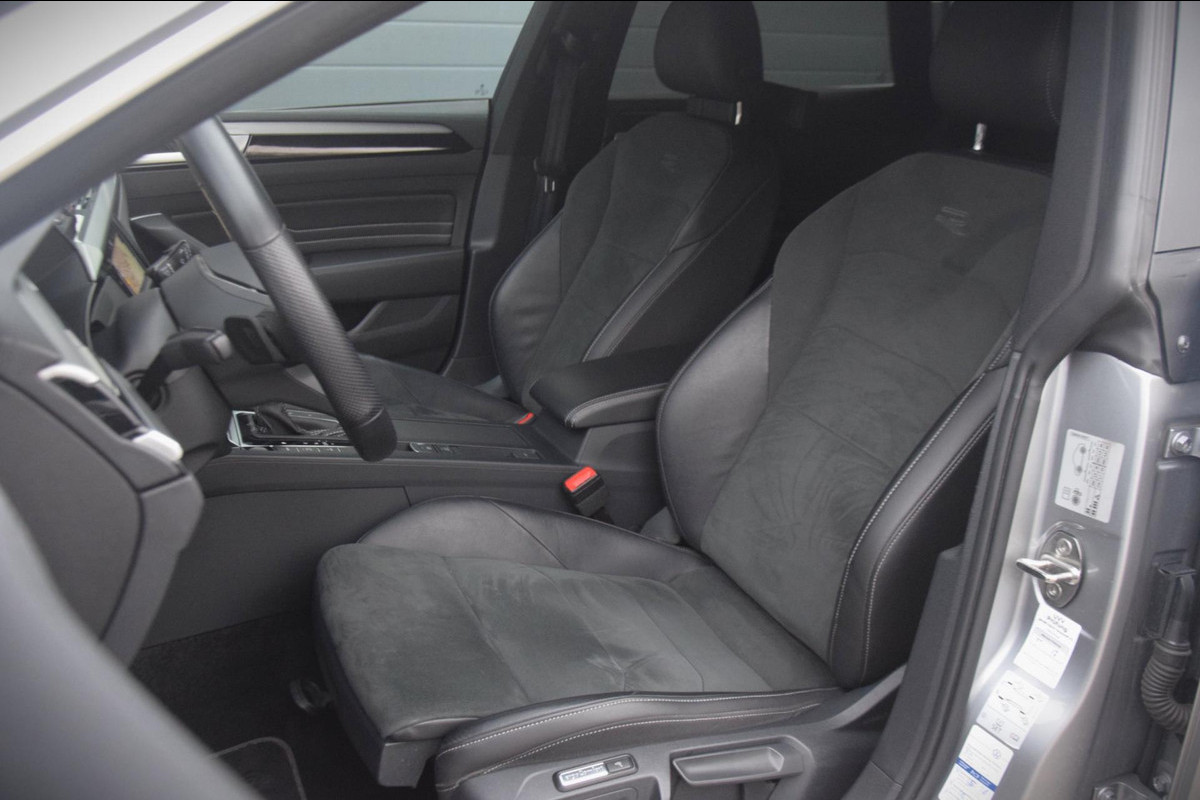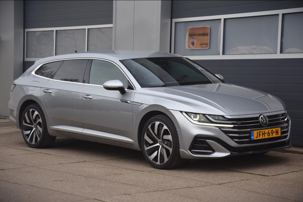 Hij blikt zelfverzekerd de wereld in, deze Volkswagen. En waarom zou hij ook niet? Want deze Arteon Shooting Brake is sterk en robuust, hij biedt veiligheid en rijcomfort in overvloed en hij blinkt bovendien uit door zijn uitstekende rijeigenschappen. Als je instapt, waan je je in een cockpit. En ook van buiten mag deze Volkswagen Arteon Shooting Brake met R-Line styling absoluut gezien worden! Een belangrijke eigenschap van iedere Volkswagen is zijn duurzaamheid. Dat ziet u ook aan deze Arteon Shooting Brake. Een viercilinder motor en een automatische transmissie zorgen voor de uitstekende prestaties van deze auto. Veel leuke extra's heeft deze auto. Om maar wat te noemen: de elektrisch bedienbare achterklep en het stijlvolle lederen interieur. Lekker hoor, die verwarmbare voorstoelen. Helemaal op koude dagen. Bovendien krijgen uw rug en die van uw bijrijder desgewenst extra aandacht door de massagefunctie. Een goede zithouding is wel zo prettig. Daarom is deze auto voorzien van comfortstoelen. Ook de passagiers achterin ervaren het ultieme comfort, dankzij de verwarmde achterbank. Verblinding van tegenliggers is er niet meer bij, dankzij de koplampen met matrix LED-verlichting. En toch de kwaliteit van daglicht in het donker! Ook 18 inch lichtmetalen velgen, warmtewerend glas, in delen neerklapbare achterbank, LED-achterlichten, verstelbare lendensteunen en verwarmde ruitensproeiers horen tot de voorzieningen op deze auto.