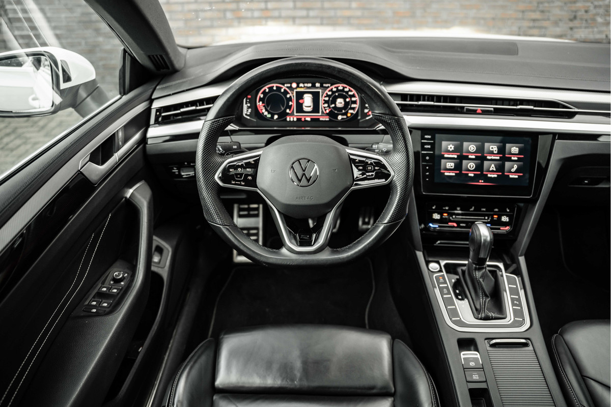 Volkswagen! Meer hoeven we eigenlijk niet te zeggen. De R-Line styling maakt deze Volkswagen Arteon Shooting Brake echt áf. Zoals het een echte Volkswagen betaamt, verkeert deze Arteon Shooting Brake in uitstekende conditie. Een zuinige benzinemotor en uitstekende prestaties, dat is wat deze Volkswagen aanbiedt. Ga samen met uw bijrijder lekker zitten in de verwarmbare voorstoelen en laat jullie bloedsomloop stimuleren door de massagefunctie. Zit u goed? Nou, zeker wel, met de comfortstoelen! Fun en functie wordt samengebracht in het elektrisch bedienbare glazen panoramadak. De elektrische achterklep opent met een druk op de knop, zodat u gemakkelijk toegang heeft tot de bagageruimte. Op gure dagen is het ook achterin heerlijk bijkomen op de verwarmde achterbank. De geavanceerde matrix LED-verlichting in de koplampen levert maximaal helder zicht en past zich subtiel aan zodra er een tegenligger komt. Zonder lichtkwaliteitsverlies! De uitmonstering van deze auto wordt gecompleteerd door onder meer 18 inch lichtmetalen velgen, warmtewerend glas, zwarte hemelbekleding, in delen neerklapbare achterbank, LED-achterlichten en verstelbare lendensteunen.