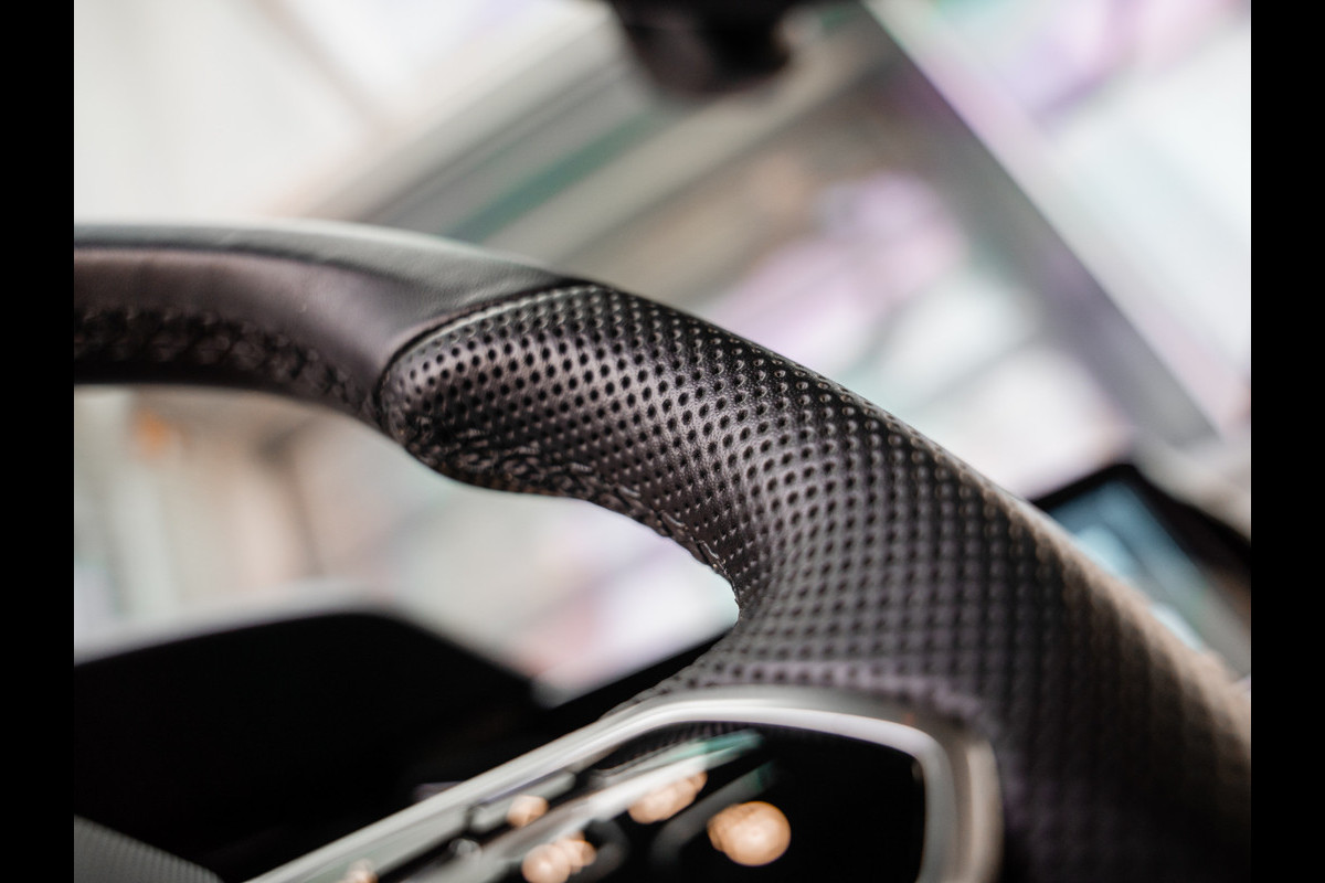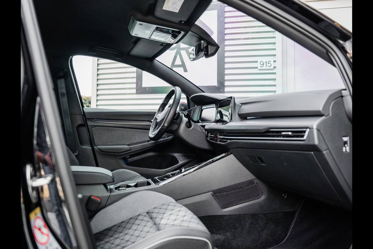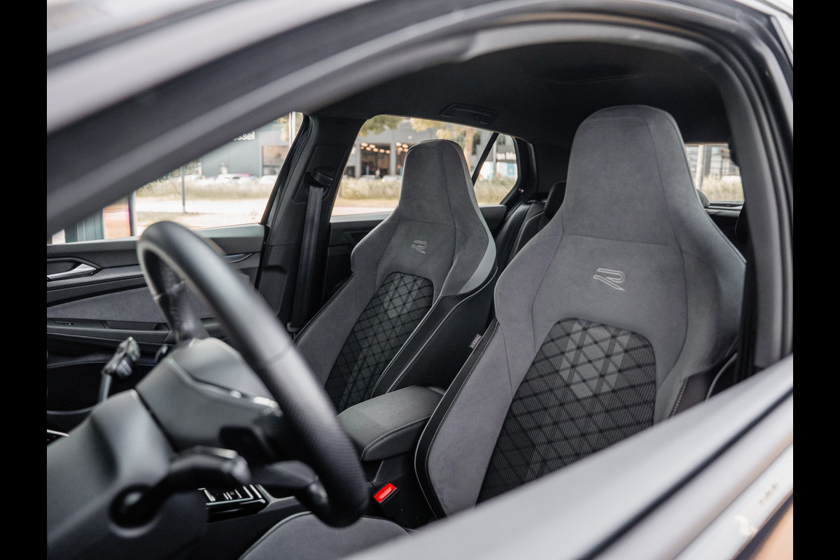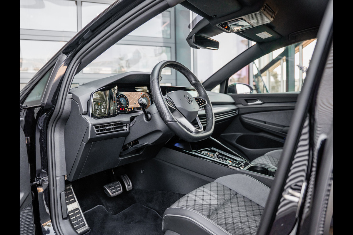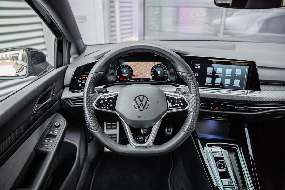 De Golf 8 R is uitgevoerd in het Deep Black pearl met een black style pakket wat de auto een stoere uitstraling geeft.