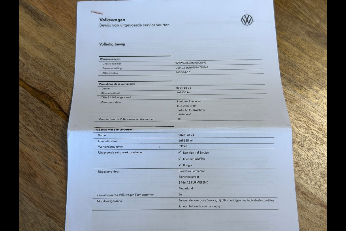 Onderhoudshistorie aanwezig