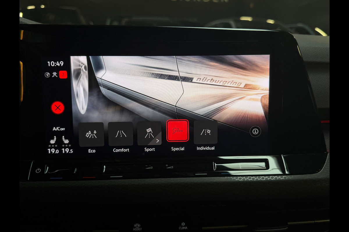 Tijdens het rijden is de head-up display een zeer fijne optie, omdat belangrijke informatie zoals snelheid en navigatie direct op de voorruit wordt geprojecteerd zodat je je ogen op de weg kunt houden. Daarnaast beschikt deze auto over de Nürburgring-uitvoering, iets wat je niet op veel Golf GTI’s tegenkomt en wat het sportieve karakter van deze auto extra benadrukt.