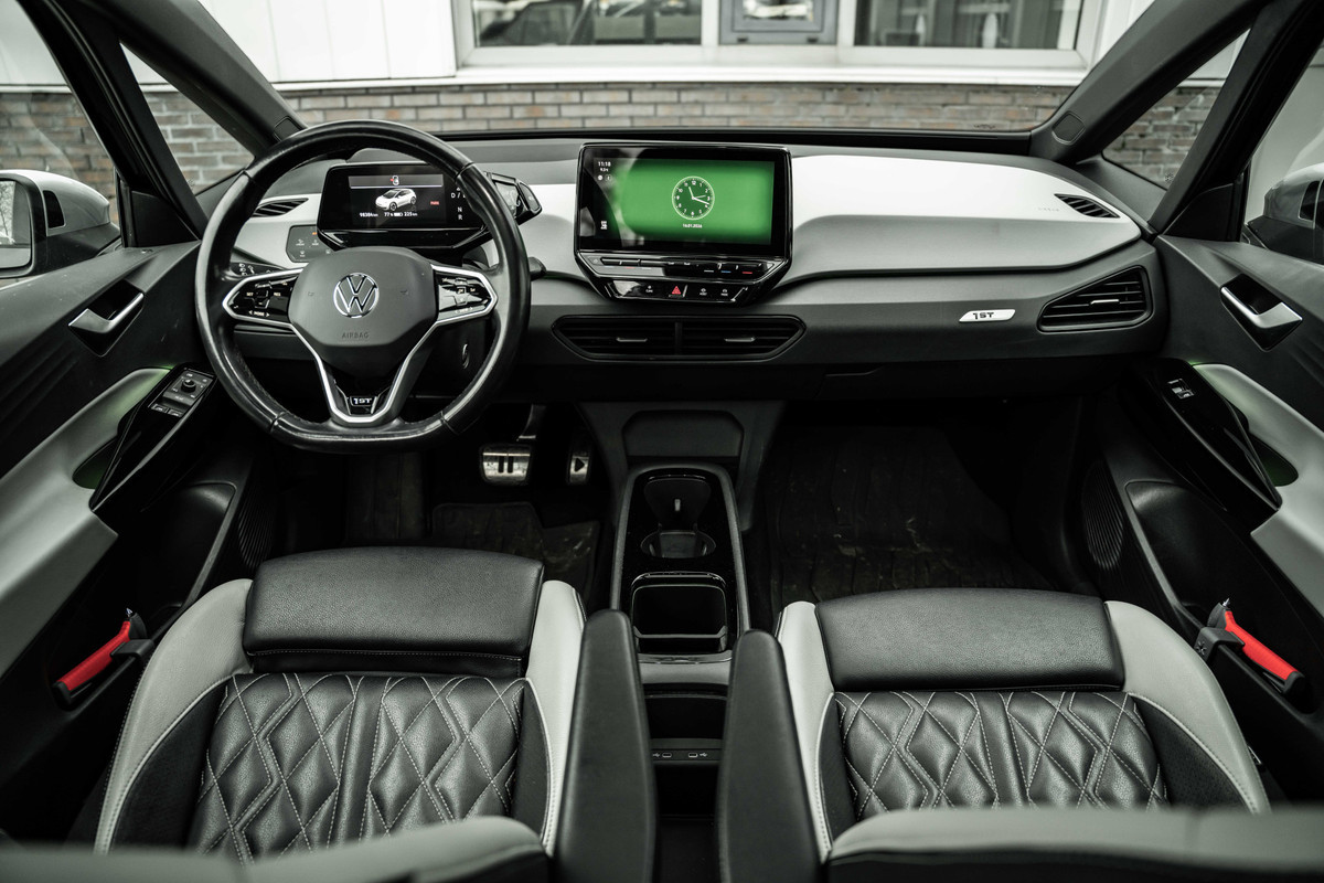 De elektromotor is stil en schoon. En met een verrassend grote actieradius! Het zijn de degelijkheid van de constructie en de doordachtheid van het ontwerp die ervoor zorgen dat een Volkswagen jarenlang begeerlijk blijft. Zoals deze ID.3, bijvoorbeeld. Een krachtige motor geeft deze auto zijn sportieve prestaties. Heerlijk comfortabel zitten, en genieten van stijlvolle kwaliteit? Deze auto heeft een fraai lederen interieur. In de verwarmbare voorstoelen zitten is elke keer een welkom gevoel. De massagefunctie doet daar nog een schepje bovenop. Het glazen panoramadak laat meer licht binnen in het interieur en zorgt voor een magnifiek uitzicht naar buiten. Daglicht bij nacht? De koplampen met matrix LED-verlichting zorgen ervoor. Bij de zeer complete uitrusting van deze auto behoren ook 20 inch lichtmetalen velgen, donker getint glas achter, draadloze tel lader, in delen neerklapbare achterbank, LED-achterlichten, verstelbare lendensteunen en snelheidsafhankelijke stuurbekrachtiging.