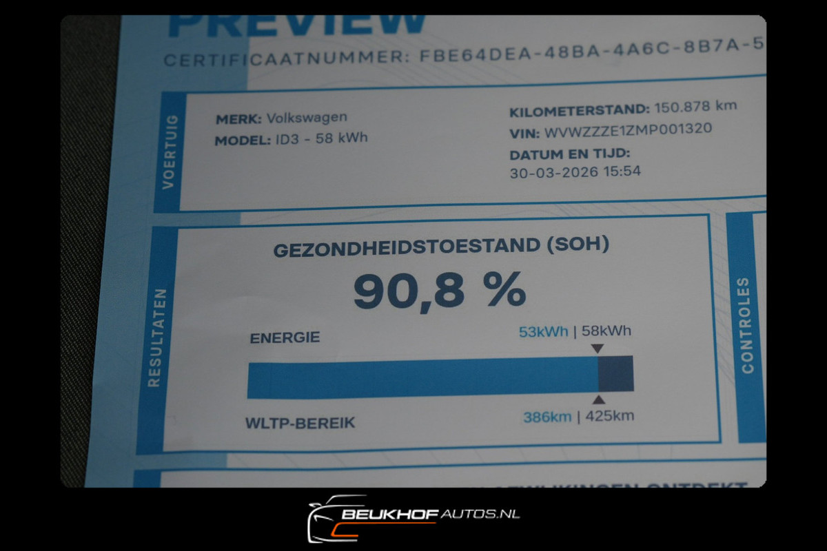 Prachtige Id3 met een hoge Soh van 91.8% welke recent is getest - Auto is met vele opties zoals camera achter en carplay - Meer foto's van de opties en ruim 100 occasions kijk op www.beukhofautos.nl