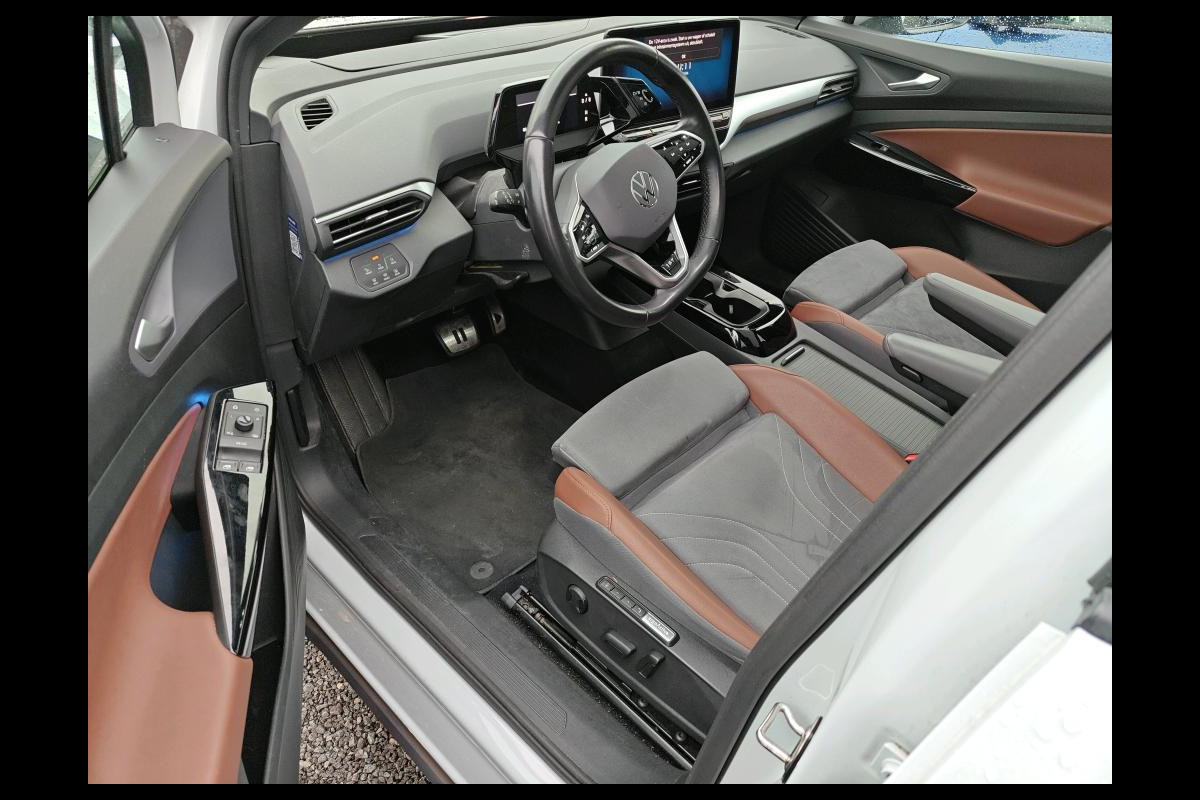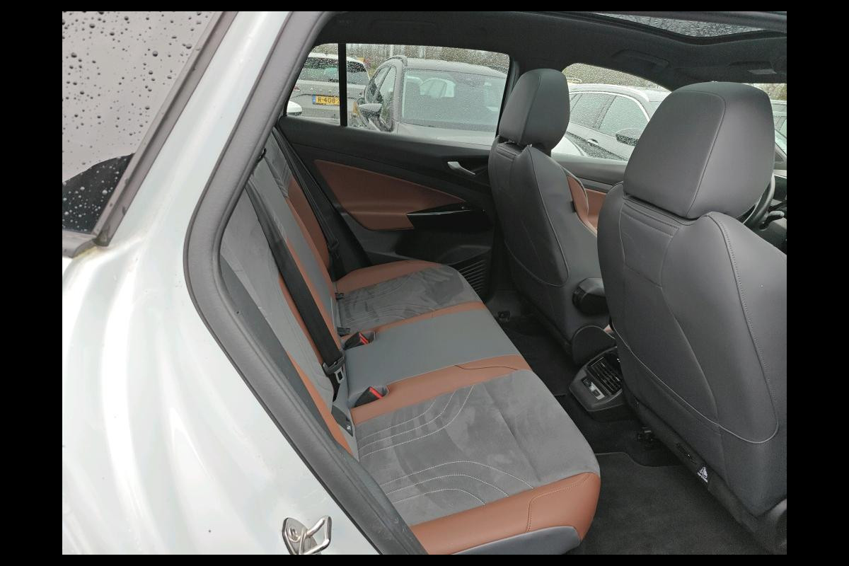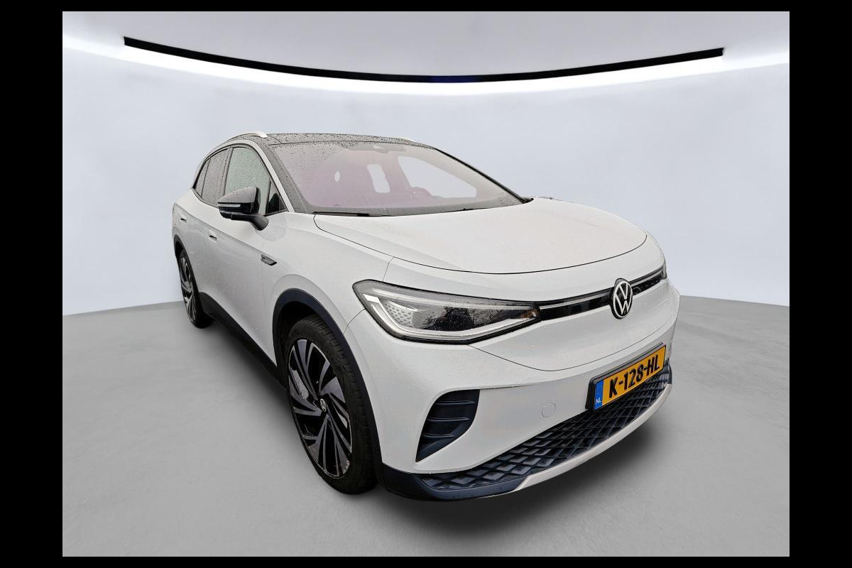 Stijlvol design en topprestaties zonder emissies. Deze Volkswagen ID.4 verbindt elegante lijnen met krachtige elektrische aandrijving zonder schadelijke uitstoot. De elektromotor is stil en schoon. En met een verrassend grote actieradius! Een belangrijke eigenschap van iedere Volkswagen is zijn duurzaamheid. Dat ziet u ook aan deze ID.4. Tijdens gure dagen is het prettig zitten in de verwarmbare voorstoelen, die bovendien zijn uitgerust met massagefunctie. Dankzij de elektrische stoelbediening is het gemakkelijk om de optimale zitpositie te vinden. Een praktische extra is de elektrisch bedienbare achterklep die opent en sluit met een druk op de knop. Het interieur lijkt groter en ruimtelijker dankzij het glazen panoramadak. Al is het nog zo fris, koude handen zijn verleden tijd door het verwarmd stuurwiel. De koplampen met matrix LED-verlichting geven daglichtkwaliteit zonder tegenliggers te hinderen. Ook is de auto voorzien van: 21 inch lichtmetalen velgen, adaptief dempingsysteem, geluidsisolerende ramen, in delen neerklapbare achterbank, LED-achterlichten en verstelbare lendensteunen.