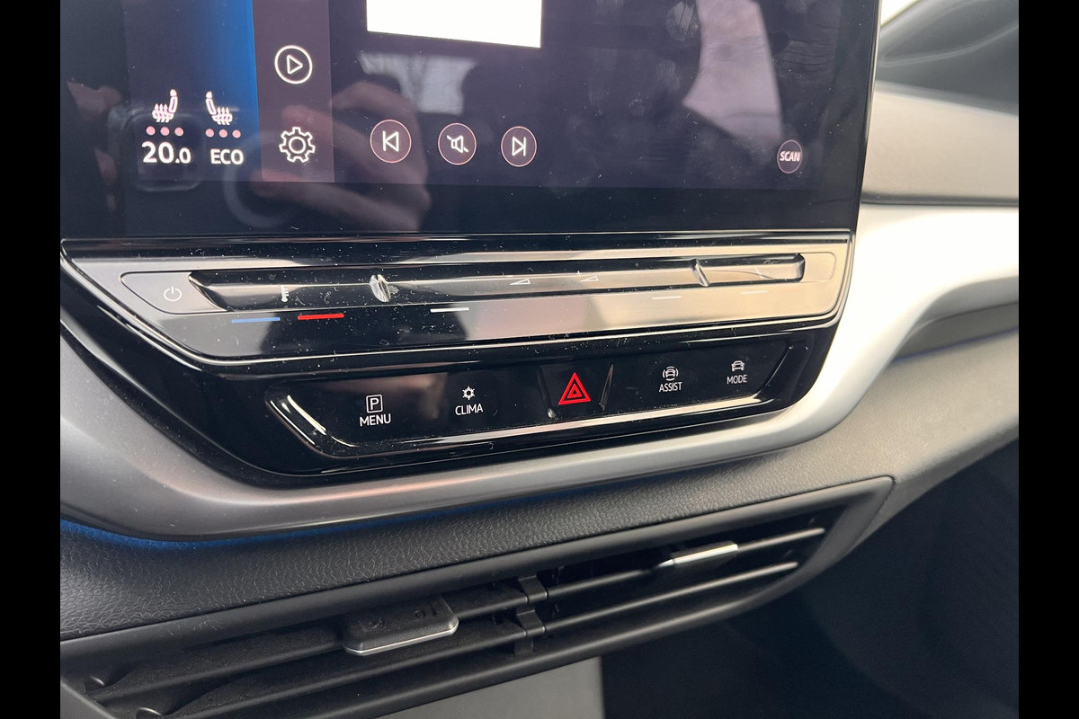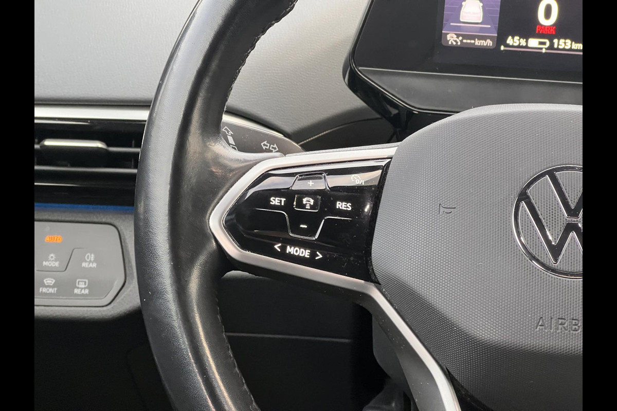 Adaptive cruise control is een comfortabele en veilige optie. Het systeem reguleert de snelheid en houdt automatisch afstand tot uw voorligger. Connected Services zorgen ervoor dat de belangrijkste functies en data van de auto altijd en overal te checken zijn. Gewoon via de app op de smartphone. In deze ID.4 vindt u niet alleen schakelaars op het stuur om het navigatiesysteem te bedienen en het audiosysteem met DAB-ontvangst, maar er is ook spraakbediening. Extra makkelijk is de draadloze telefoonlader. Bij het wisselen van rijbaan kan een dode hoek ontstaan waardoor achterliggers te dichtbij kunnen komen. De achteropkomend verkeer waarschuwing geeft in dat geval automatisch een signaal. De uitrusting van deze Volkswagen is met automatische airconditioning, parkeersensoren voor en achter, regensensor, automatisch dimmende binnenspiegel en centrale deurvergrendeling met afstandsbediening behoorlijk compleet.