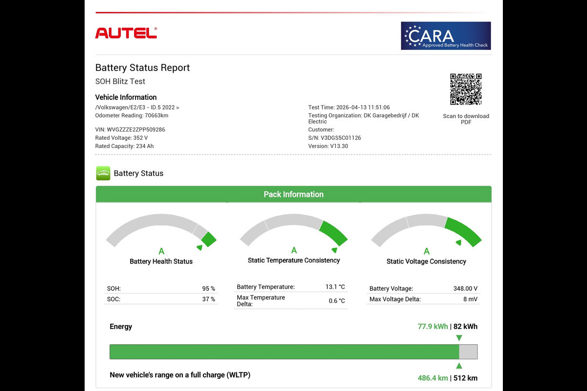 Accu: 77 kWh, Conditie: 95%
