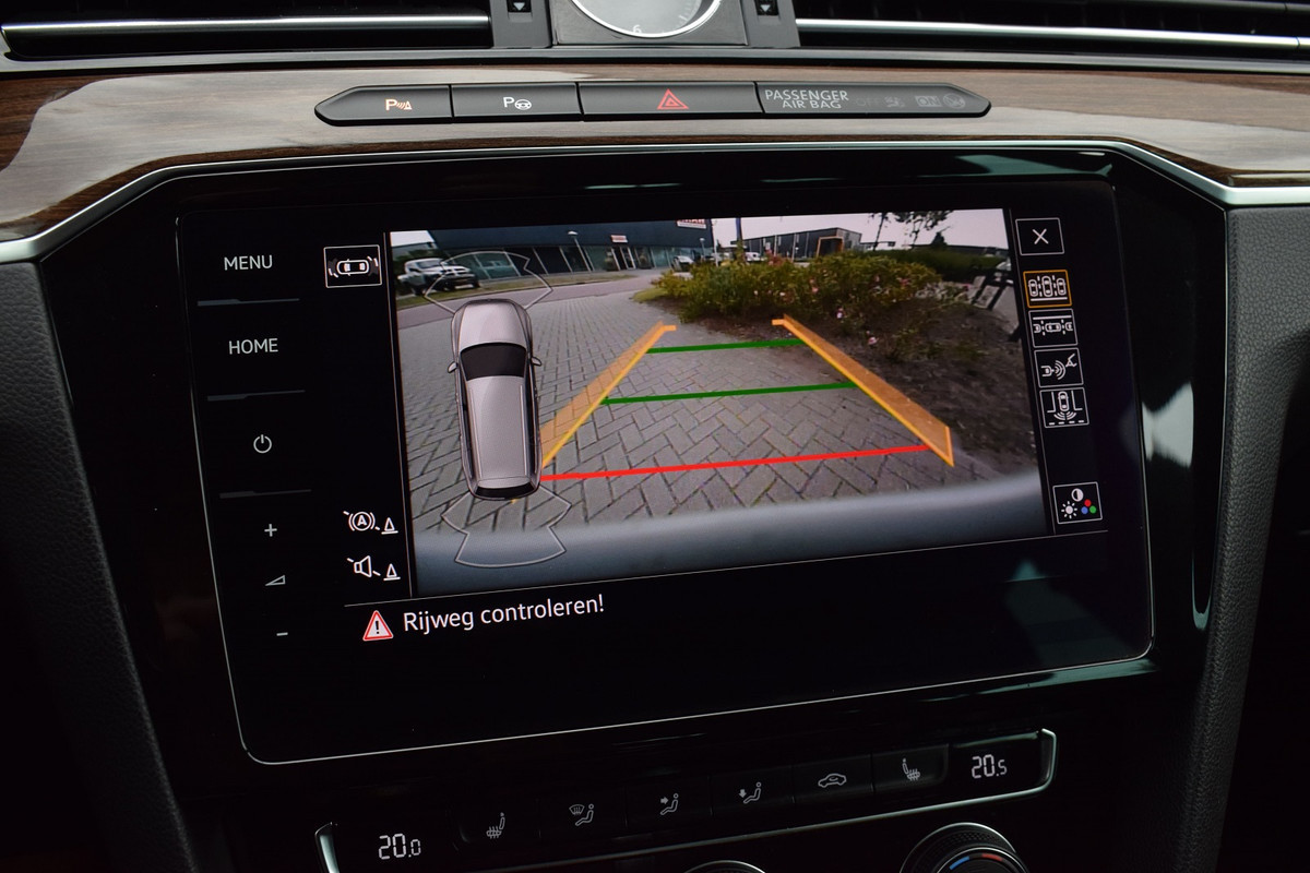 Volkswagen Passat Variant 1.4 TSI 150pk DSG Highline / R-line. Compleet uitgevoerd met o.a.: Virtual Cockpit, Navigatiesysteem 'Discover Pro', APP Connect, Adaptieve Cruise Control, Lederen multifunctioneel stuurwiel, Edelhout dashboardinleg i.c.m. Pianolak zwart, Elektrisch bedienbare achterklep, LED koplampen en achterlichten, Lichtmetalen velgen 17" 'Salvador', Half lederen / alcantara interieur met sportstoelen voor, Stoelverwarming voor, Rolgordijnen voor achterste zijruiten, Elektrisch bedienbare achterklep, Centrale vergrendeling 'Keyless go', Privacy glas achter, Buitenspiegels verwarmbaar, Parkeersensoren voor en achter, Achteruitrijcamera.