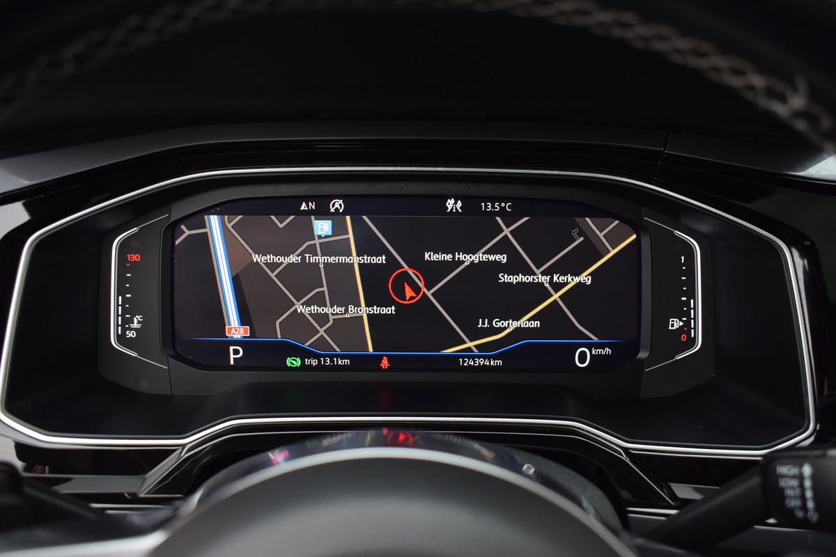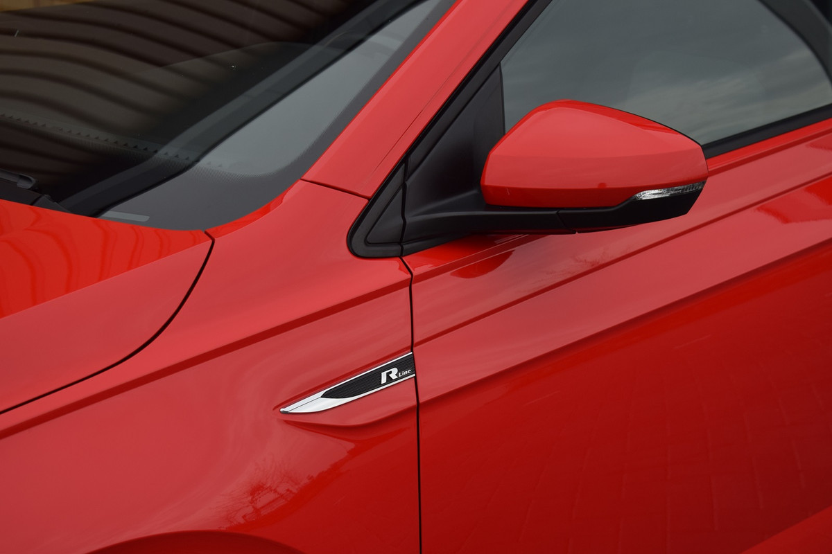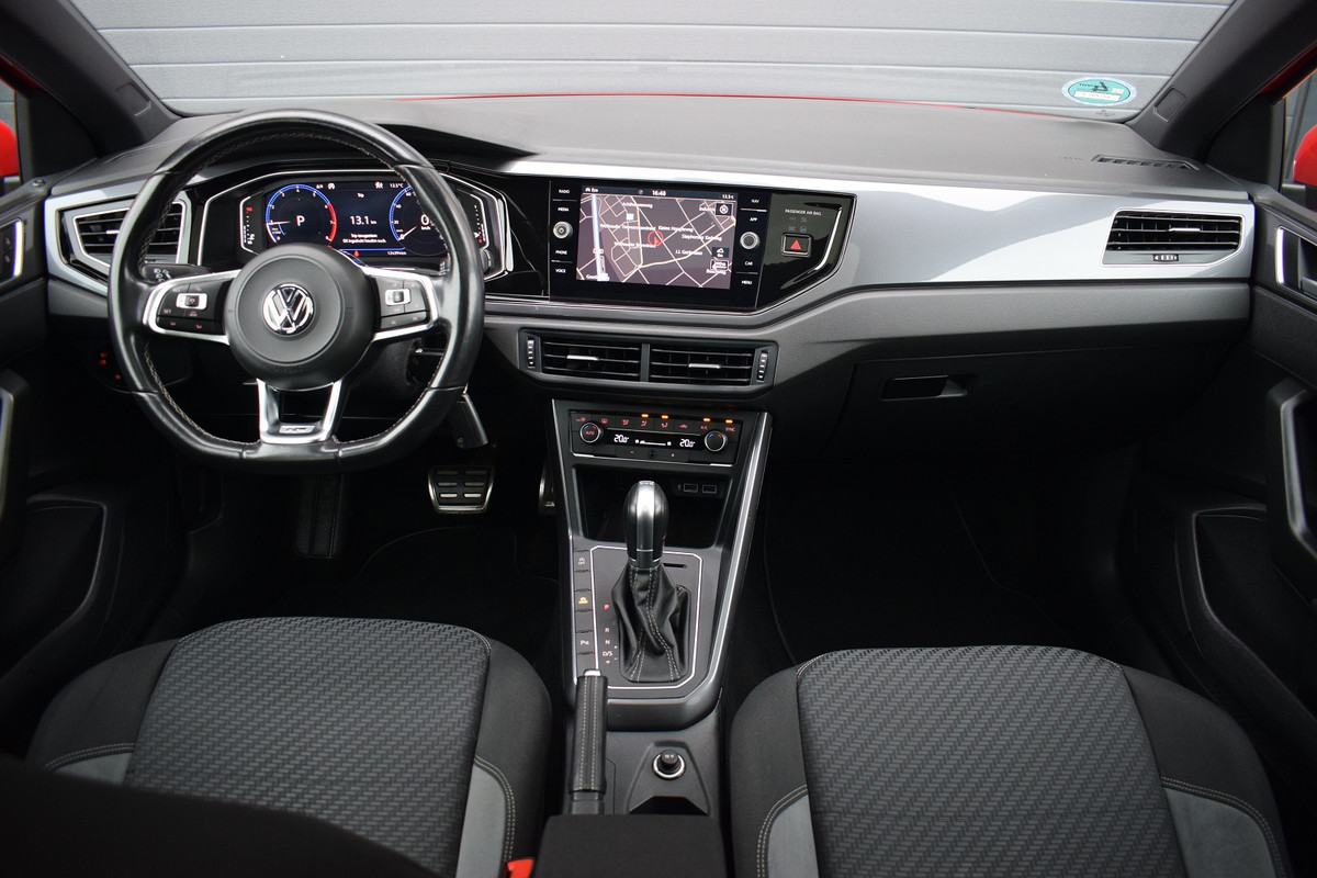 Volkswagen Polo 1.0 TSI 116pk DSG R-line. Uitgevoerd met o.a.: R-line in- en exterieur, Panoramadak, Virtual Cockpit, Rijprofielselectie met instelbare schokdempers, Adaptieve Cruise Control, Climate control, Navigatiesysteem 'Discover Pro', Apple Carplay, Lichtmetalen velgen 17" "Bonneville", LED koplampen en achterlichten, Lederen multifunctioneel sportstuur met schakelflippers, Privacy glas achter, Parkeersensoren voor en achter, Achteruitrijcamera, Trekhaak.