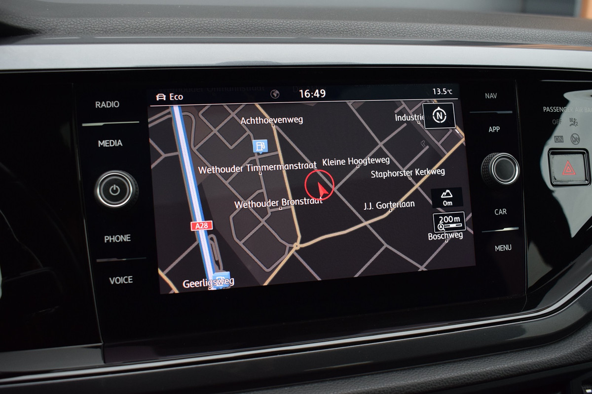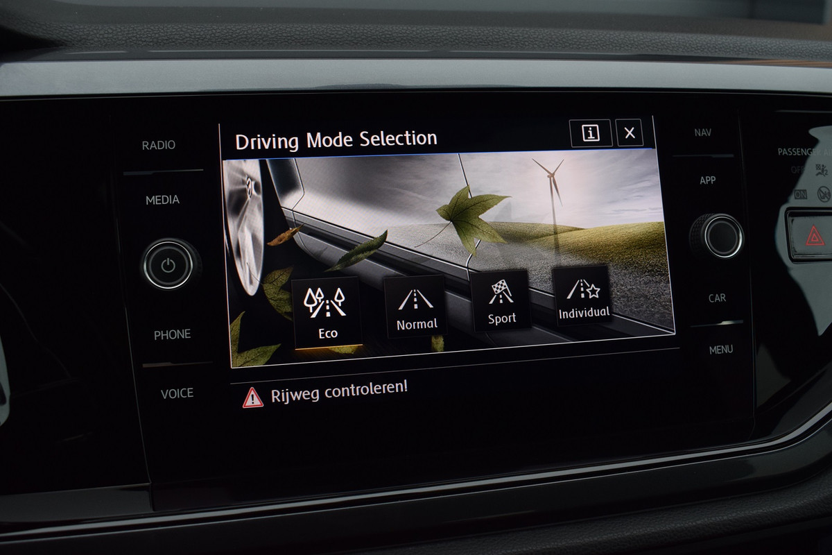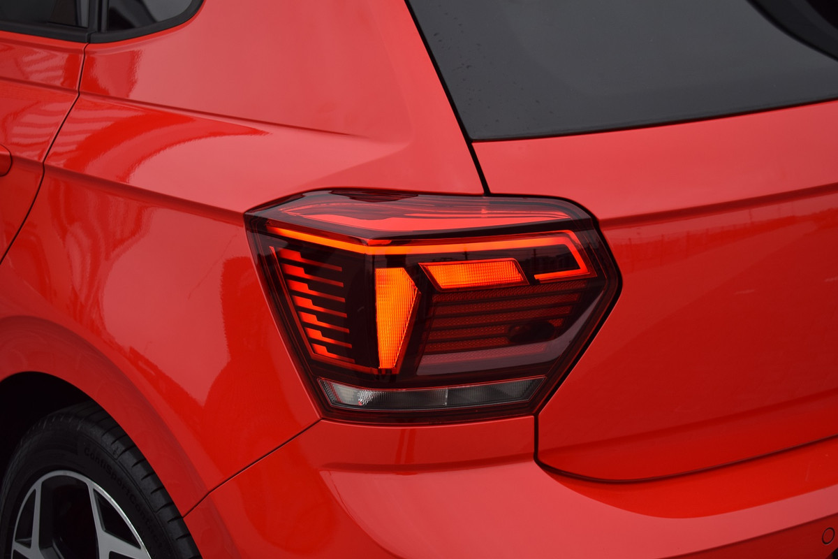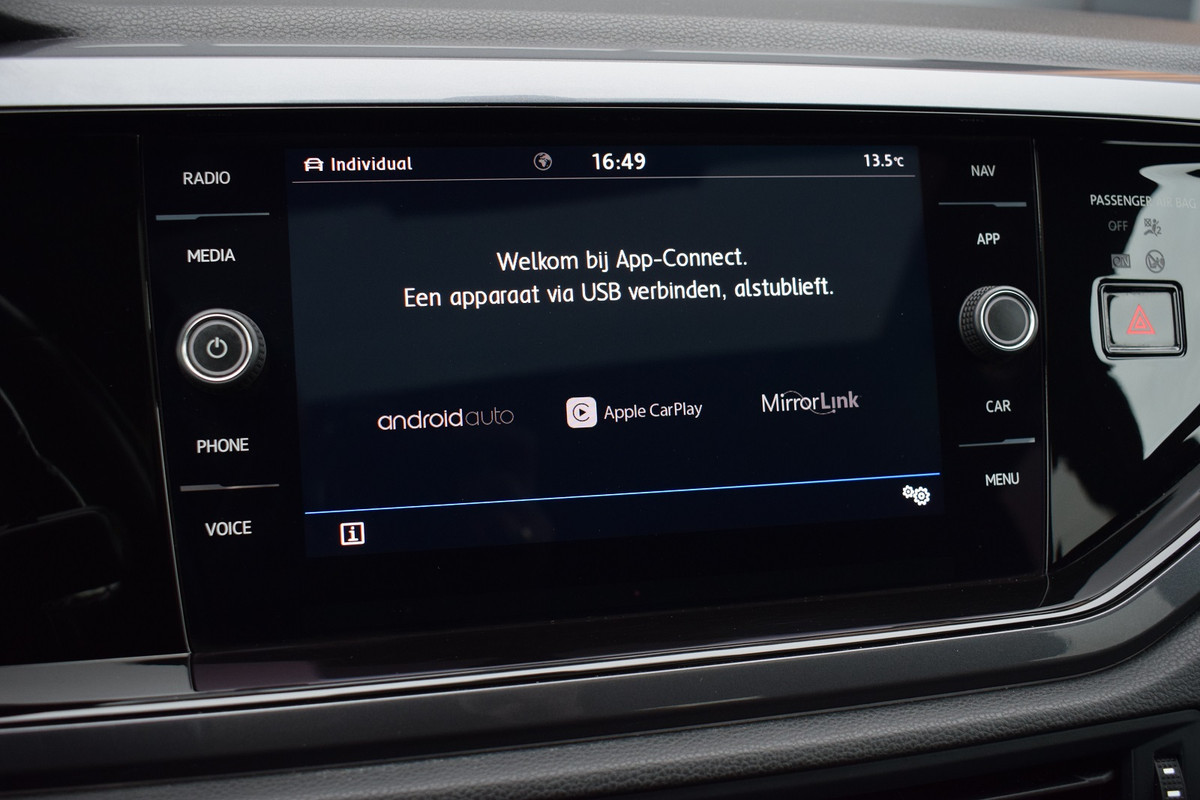 Volkswagen Polo 1.0 TSI 116pk DSG R-line. Uitgevoerd met o.a.: R-line in- en exterieur, Panoramadak, Virtual Cockpit, Rijprofielselectie met instelbare schokdempers, Adaptieve Cruise Control, Climate control, Navigatiesysteem 'Discover Pro', Apple Carplay, Lichtmetalen velgen 17" "Bonneville", LED koplampen en achterlichten, Lederen multifunctioneel sportstuur met schakelflippers, Privacy glas achter, Parkeersensoren voor en achter, Achteruitrijcamera, Trekhaak.