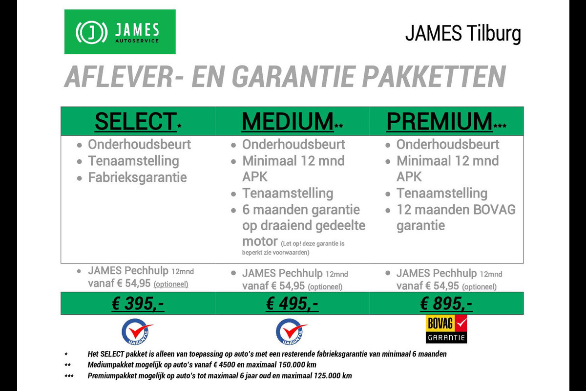JAMES Autoservice Tilburg is al meer dan 35 jaar een begrip in Tilburg en omgeving. Bezoek onze website www.jamestilburg.nl voor meer informatie over ons bedrijf, ons actuele aanbod, aanvullende foto’s en een 360° video van onze auto’s.