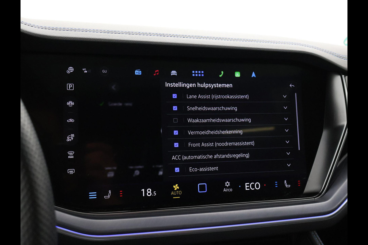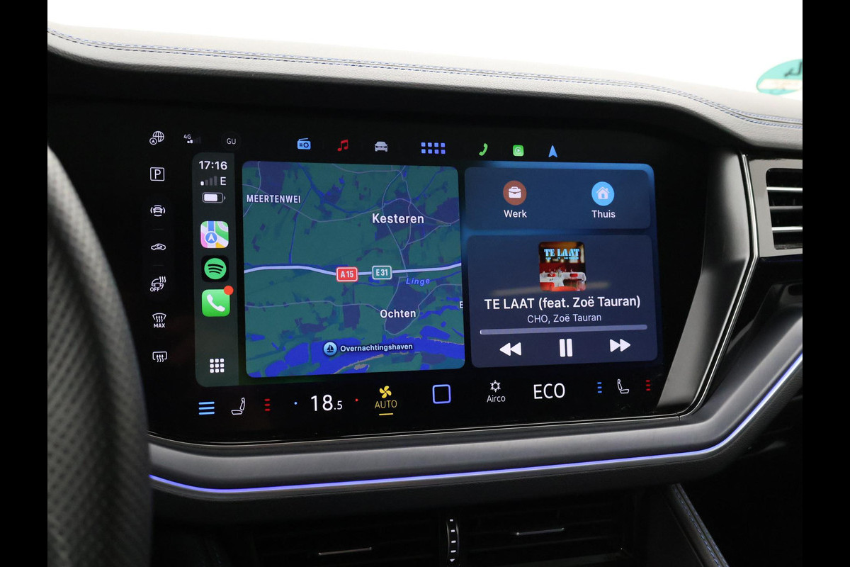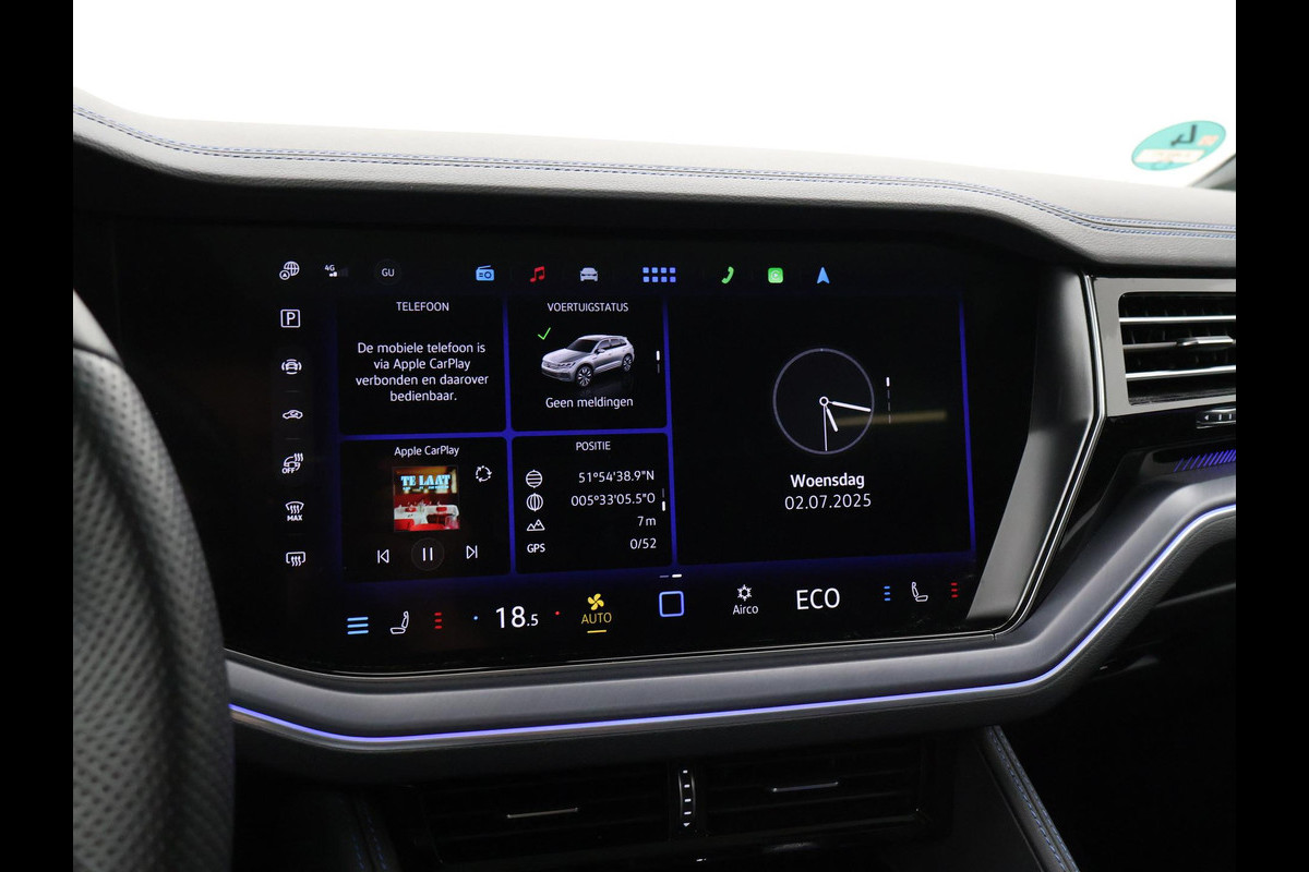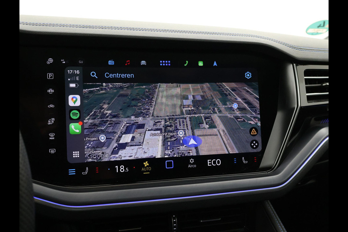 Origineel Nederlandse en 1e eigenaar Touareg R van 2024, BTW verrekenbaar, Door ons zelf nieuw geleverd, nieuwprijs was 111.147 euro. 3.0 TSI V6 e-Hybrid plug-in hybride 462 PK 4motion automaat in de unieke kleur Chili Red parelmoer, Puglia Ergo Vienna zwart leder R design interieur met blauw stiksel, Lederen interieur/dashboard delen met blauw stiksel, Servosluiting portieren, Extra getinte achterruiten, 21 inch Leeds Bi-Color lichtmetalen velgen, Assistance Pakket met 360 graden rondom zicht camerasysteem, Panorama schuif/kanteldak, Sfeerverlichting interieur met verschillende kleuren, Luchtvering met regelbare hoogte, Stoelventilatie, Stoelverwarming voor + achterin, Adaptive cruise control, Digitale cockpit, Apple Carplay / Android Auto appstreaming Google Maps, Flitsmeister, Spotify etc, Elektrische achterklep, Keyless-entry en keyless-drive, Full LED verlichting rondom, Alarm klasse 5, Head-up display, 4-zone climate control met aparte bediening achterin, Lijnassistentie, Dodehoek assistentie, Verkeersbordenherkenning, DAB digitale radio, Elektrische stoelverstelling met geheugen,