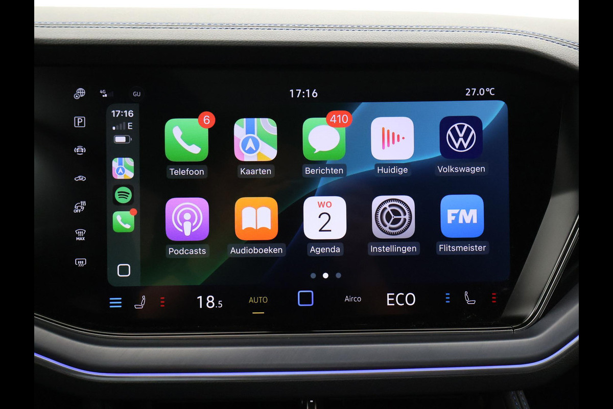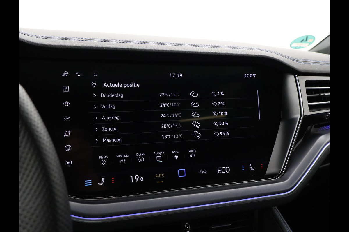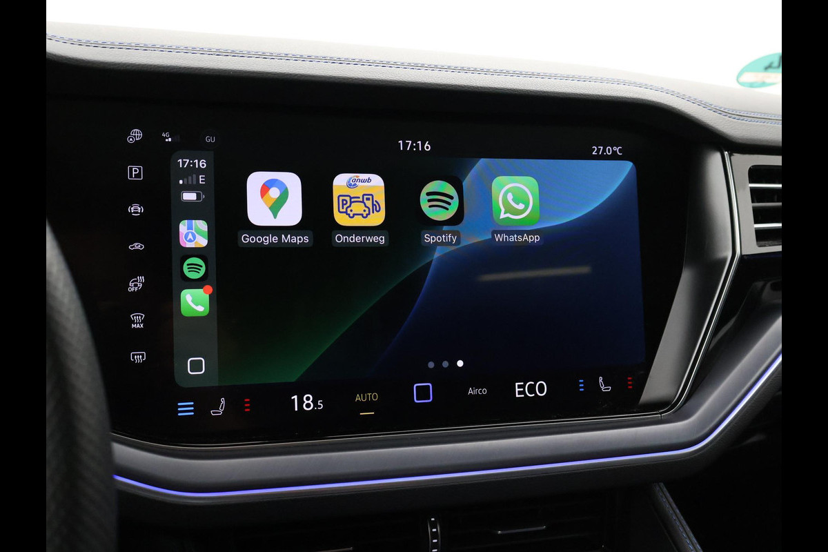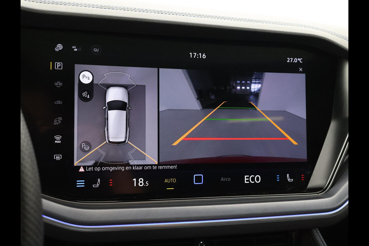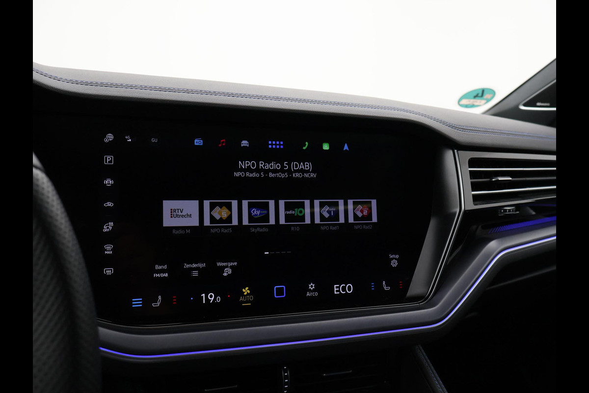 Origineel Nederlandse en 1e eigenaar Touareg R van 2024, BTW verrekenbaar, Door ons zelf nieuw geleverd, nieuwprijs was 111.147 euro. 3.0 TSI V6 e-Hybrid plug-in hybride 462 PK 4motion automaat in de unieke kleur Chili Red parelmoer, Puglia Ergo Vienna zwart leder R design interieur met blauw stiksel, Lederen interieur/dashboard delen met blauw stiksel, Servosluiting portieren, Extra getinte achterruiten, 21 inch Leeds Bi-Color lichtmetalen velgen, Assistance Pakket met 360 graden rondom zicht camerasysteem, Panorama schuif/kanteldak, Sfeerverlichting interieur met verschillende kleuren, Luchtvering met regelbare hoogte, Stoelventilatie, Stoelverwarming voor + achterin, Adaptive cruise control, Digitale cockpit, Apple Carplay / Android Auto appstreaming Google Maps, Flitsmeister, Spotify etc, Elektrische achterklep, Keyless-entry en keyless-drive, Full LED verlichting rondom, Alarm klasse 5, Head-up display, 4-zone climate control met aparte bediening achterin, Lijnassistentie, Dodehoek assistentie, Verkeersbordenherkenning, DAB digitale radio, Elektrische stoelverstelling met geheugen,