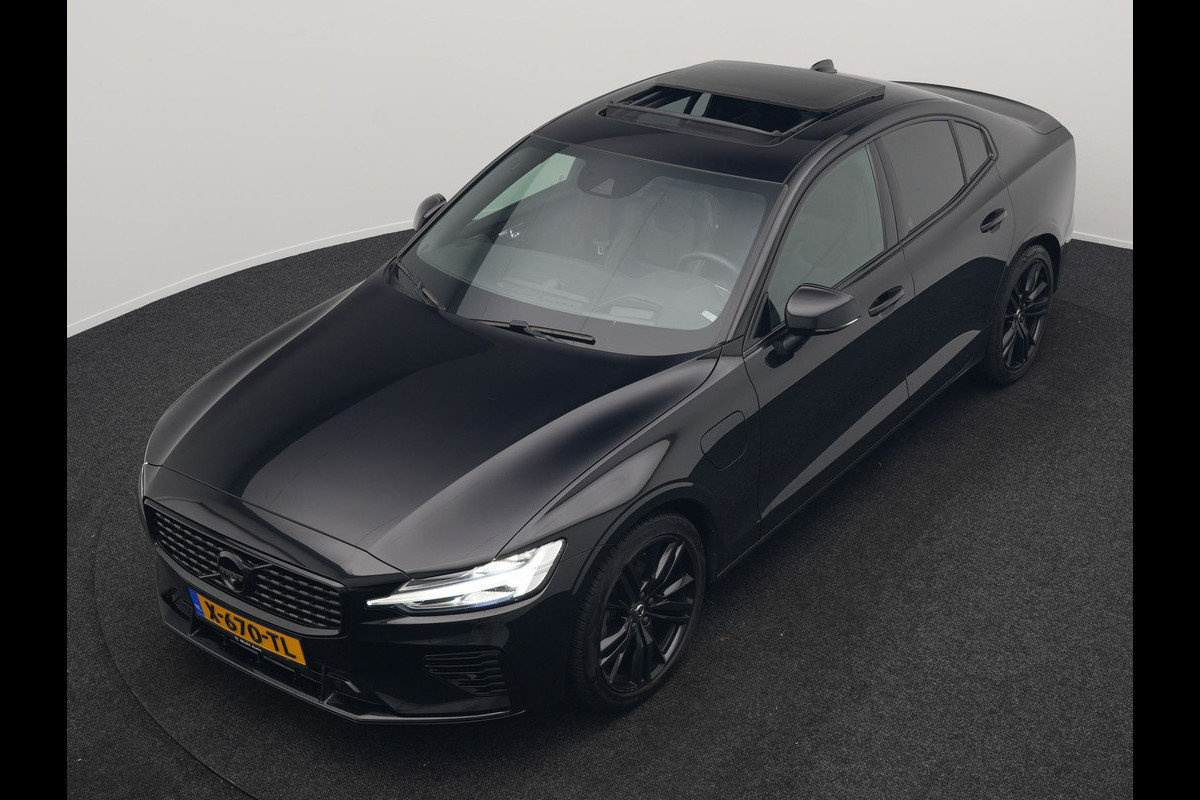 Volvo S60 Recharge T8 AWD R-Design Plug in Hybrid 391pk Black Dealer O.H PHEV | Schuifdak | Bowers & Wilkins | Adaptive Cruise | Luxe Lederen Sportstoelen Massage & Memory | 19"L.M | 360 Camera | Keyless |