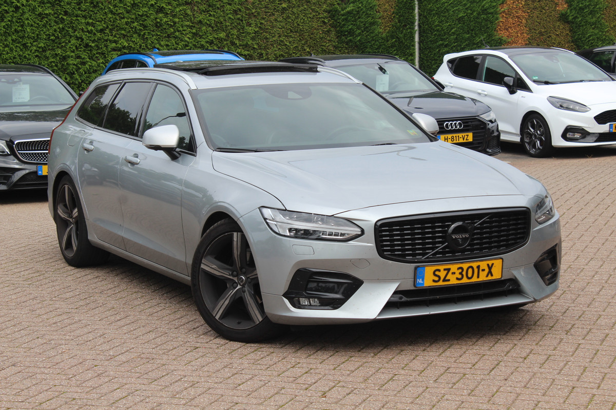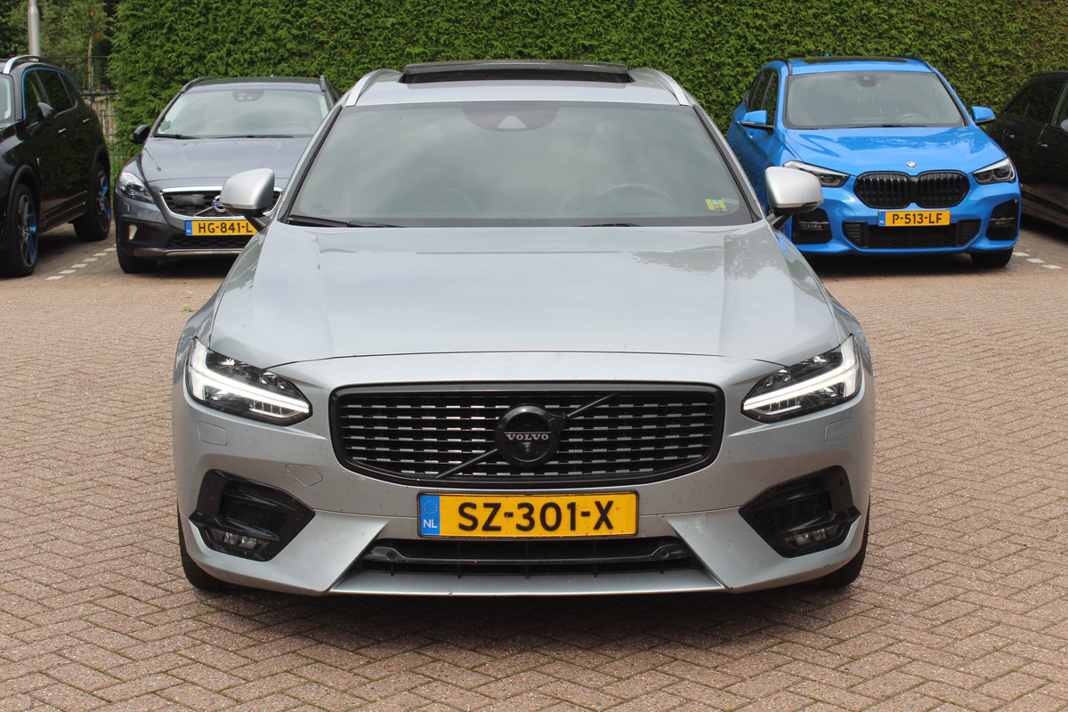 Volvo V90 2.0 D3 R-Design / Trekhaak / Panoramadak / Camera / Head-up / Leder / 19'' / Standverwarming / Dodehoek / Stuur+Stoelverwarming / Elektr. achterklep / ACC
