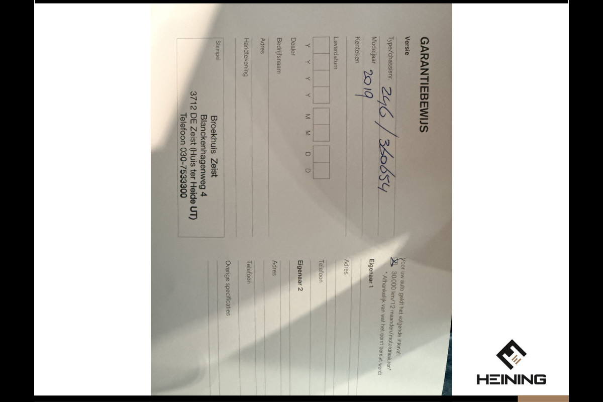 Fabrikant: Autobedrijf Heining Oosterinslag 17 3871AL HOEVELAKEN, NL 0332463886 http://www.heining.nl info@heining.nl